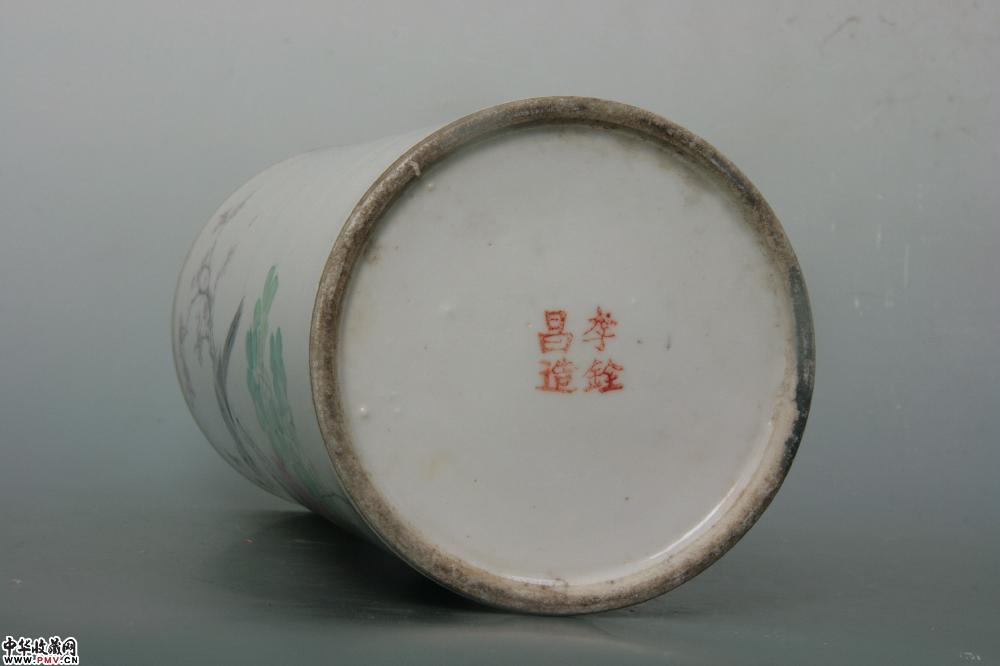 高28.5cm,口径12.2cm,底径11.8cm,完好,“李铨昌造”矾红底款。