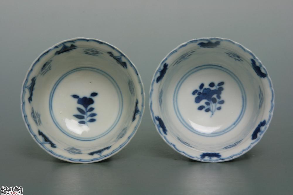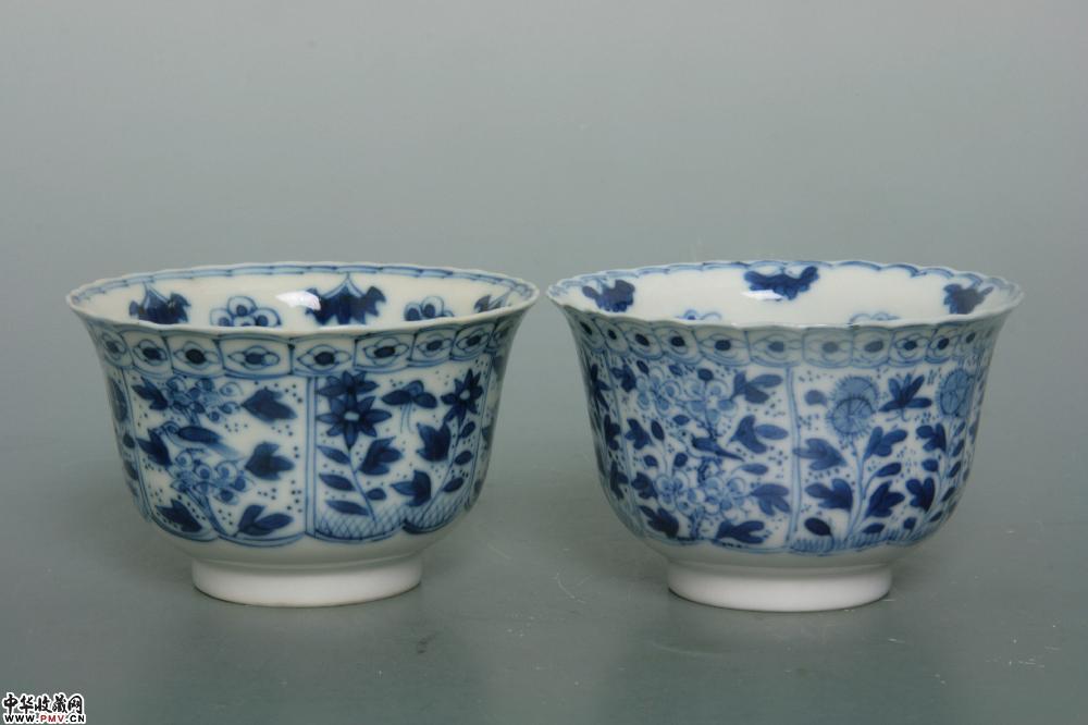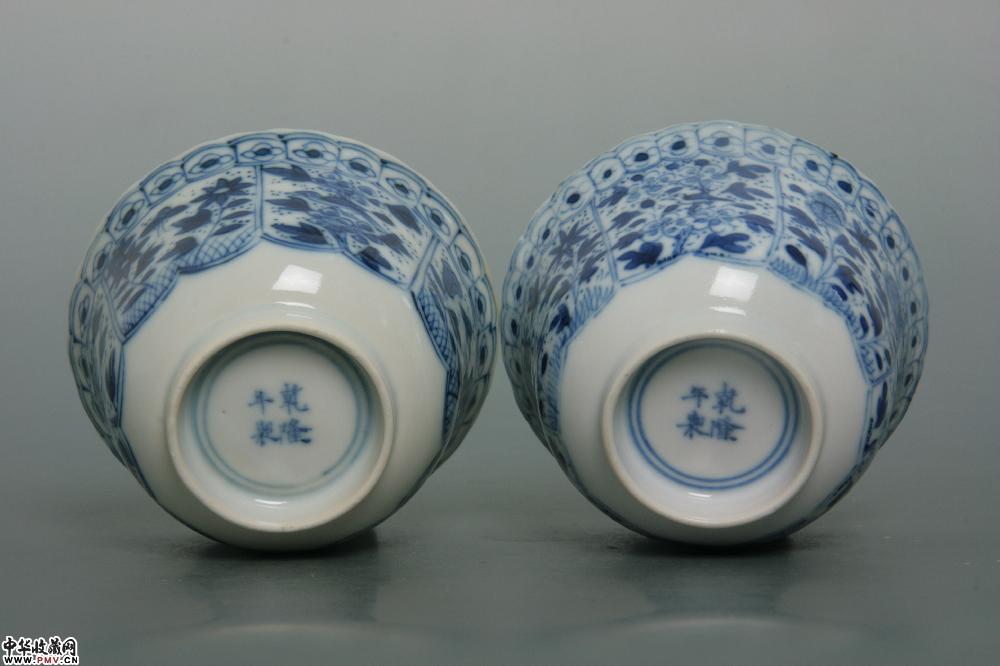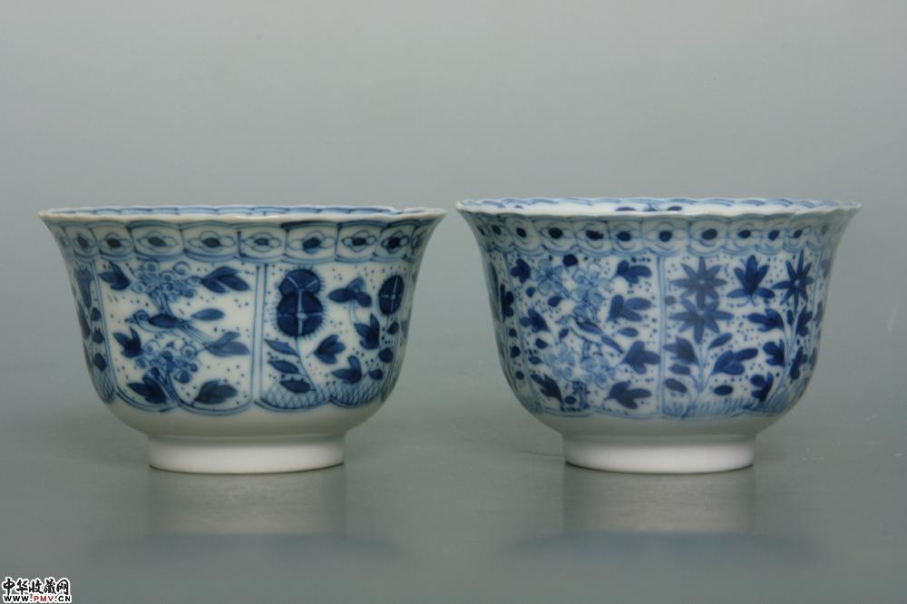 清乾隆景德镇窑其规划开光花鸟纹菱口杯(2只)
