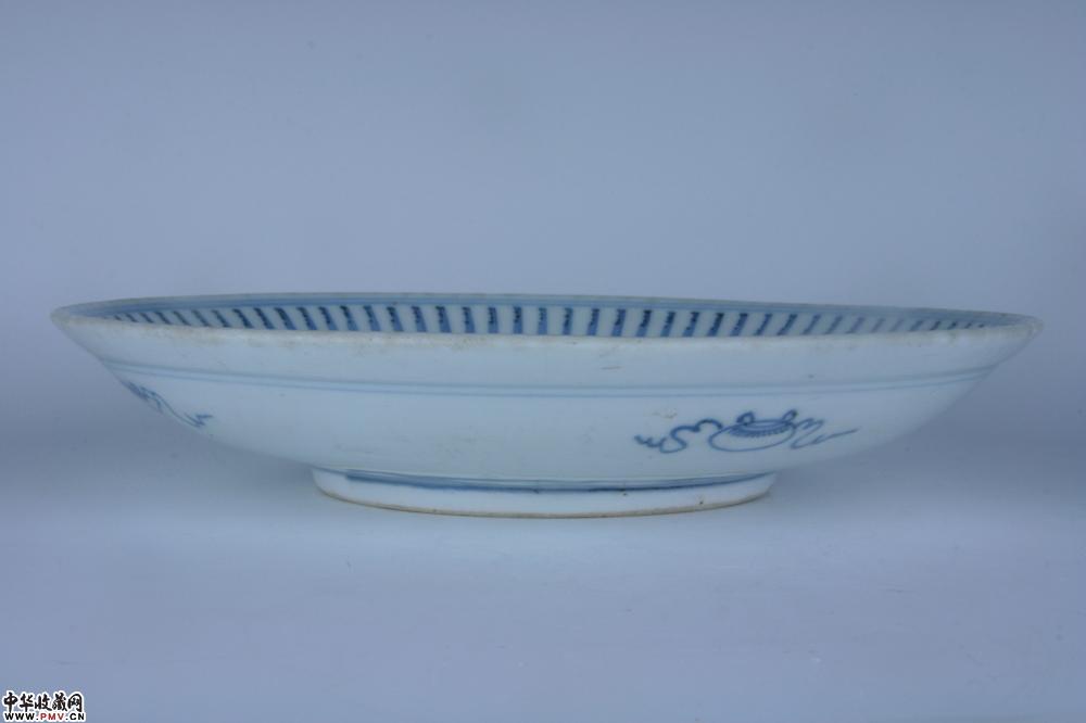 口径24.4CM,高4.6CM,底11.6cm。口沿小磕,余完好