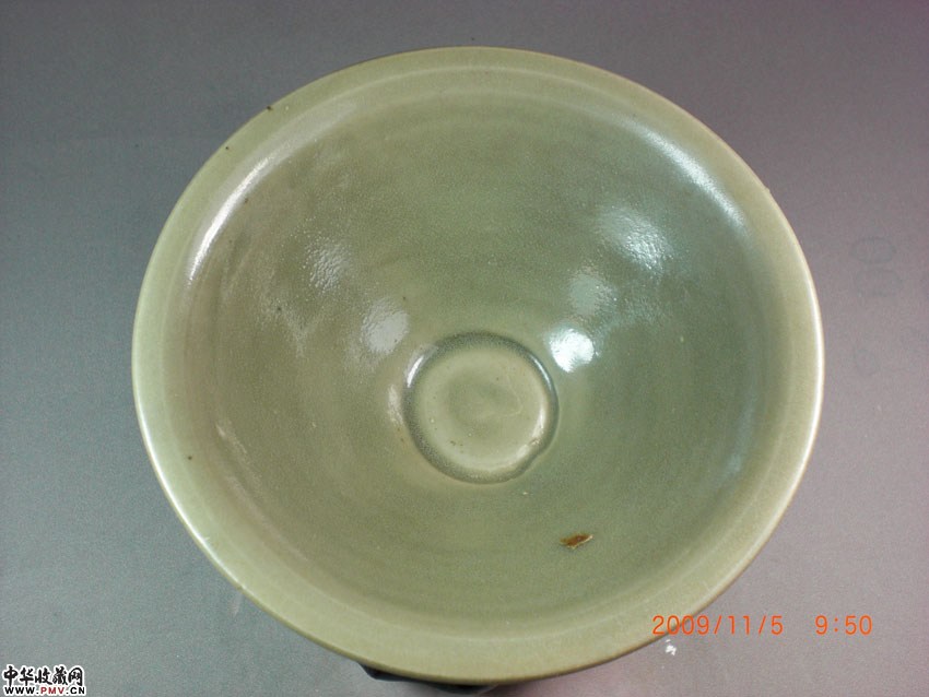 口径11.5厘米,高4.5厘米,盏内一微小粘外完好,此盏造型规正,胎体均匀,型似斗笠,发色青中微微泛黄,釉面光亮温润,为典型的宋代耀州窑产品。最近耀州窑产品是大家追捧的热点,生温很快,应当为收藏之首选!