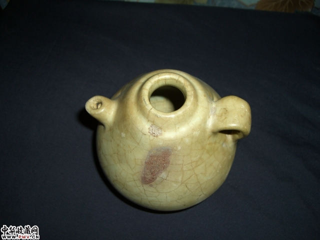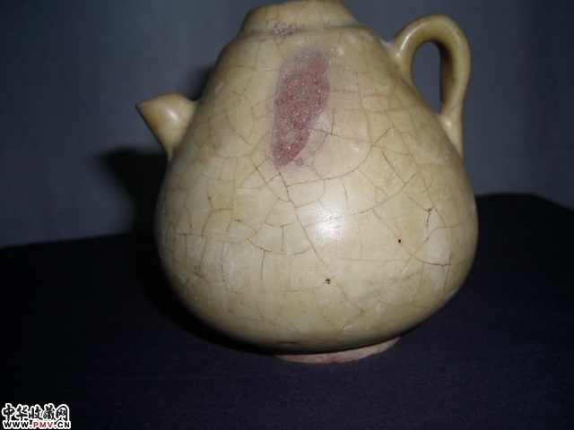 宋.龙泉青釉加彩紫斑梨型壶
