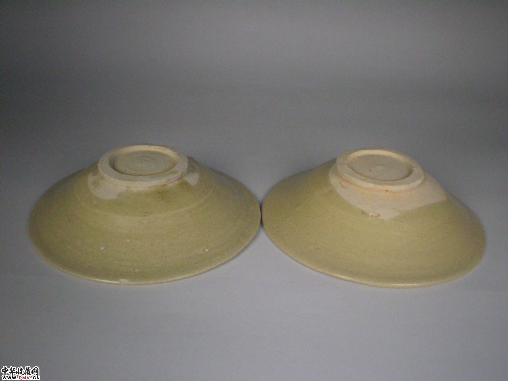 一只完整一只口沿有芝麻小磕和背面窑裂痕不透。