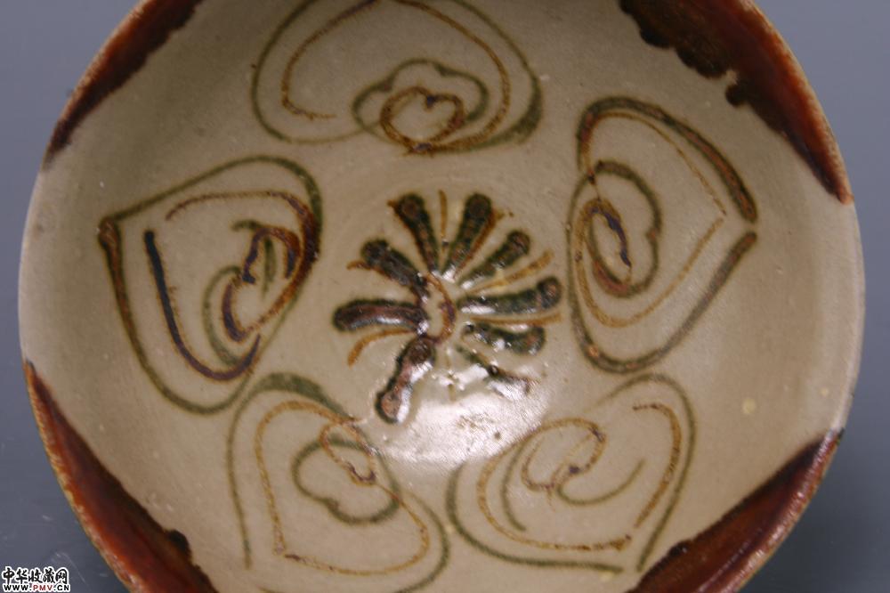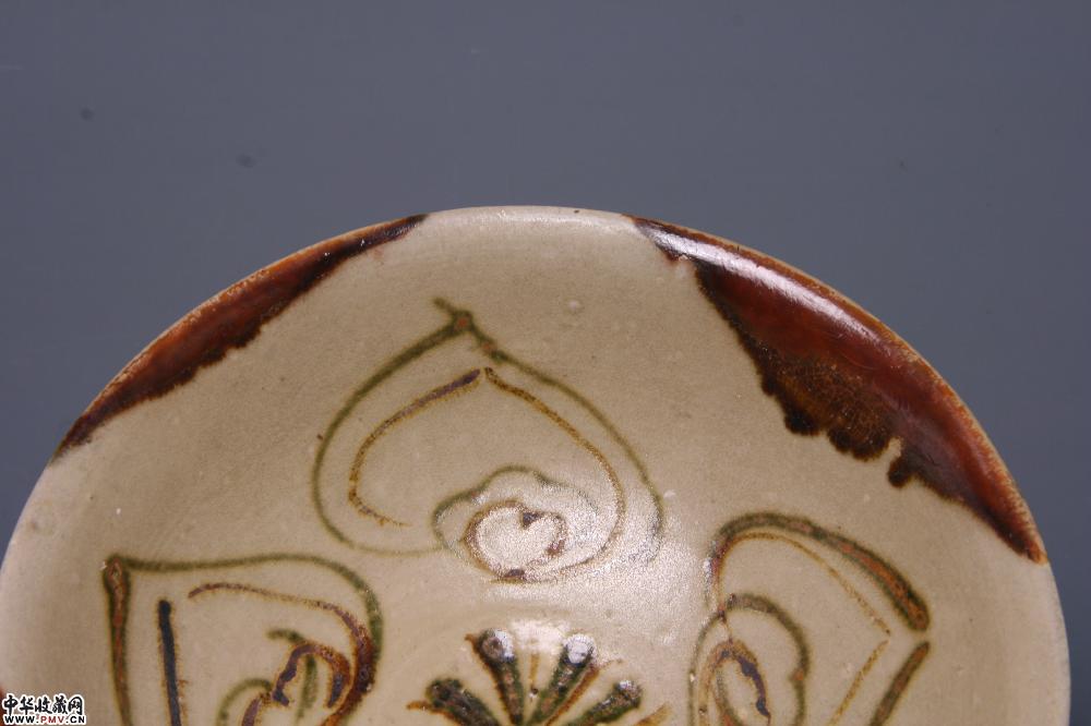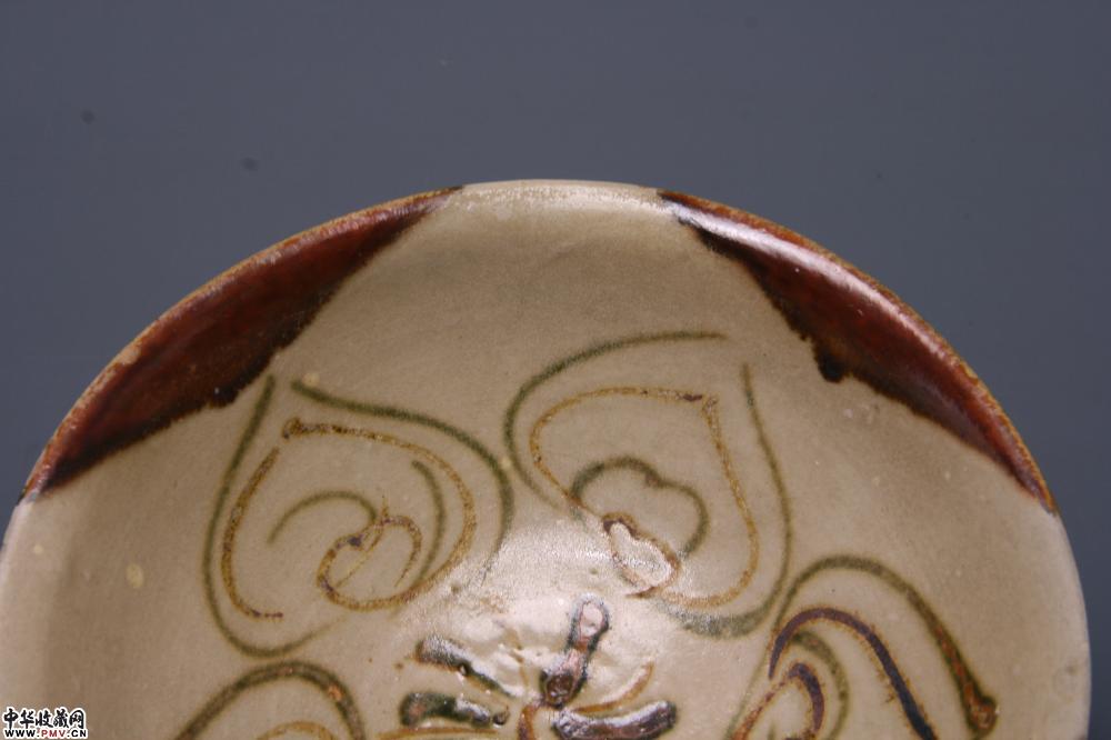 唐长沙窑青釉彩绘莲花纹碗