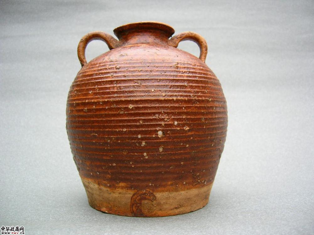 褐彩双耳甑