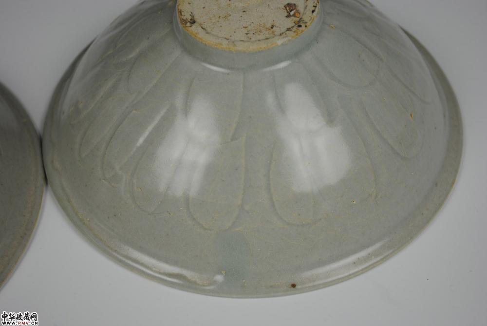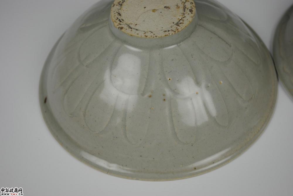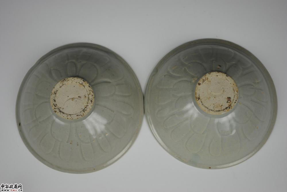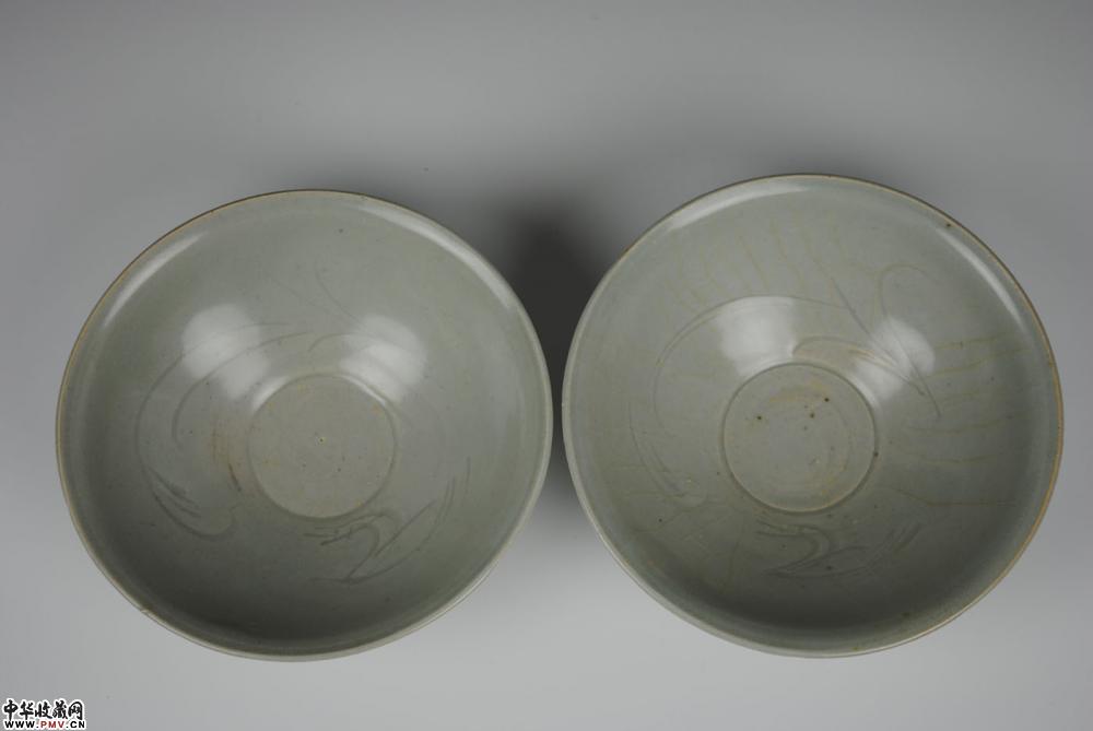 南宋湘湖窑青白釉鹅纹莲瓣碗(一对)