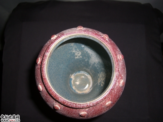特征:北宋钧窑鼓钉罐,玫瑰紫釉灰胎坚,瘦胫鼓腹麻酱底,喜闻神州鼓喧天......