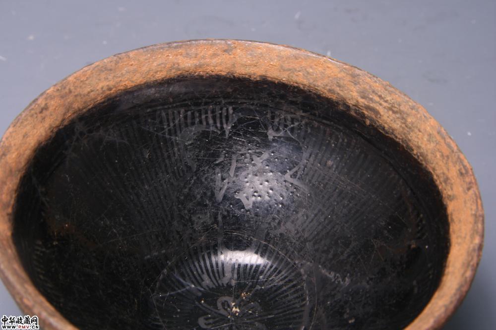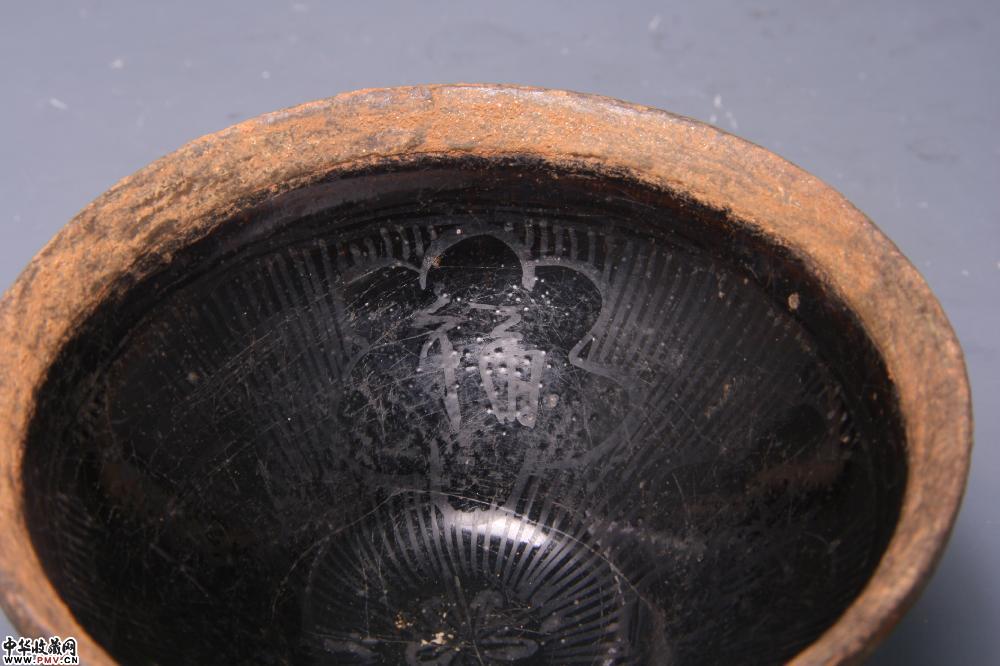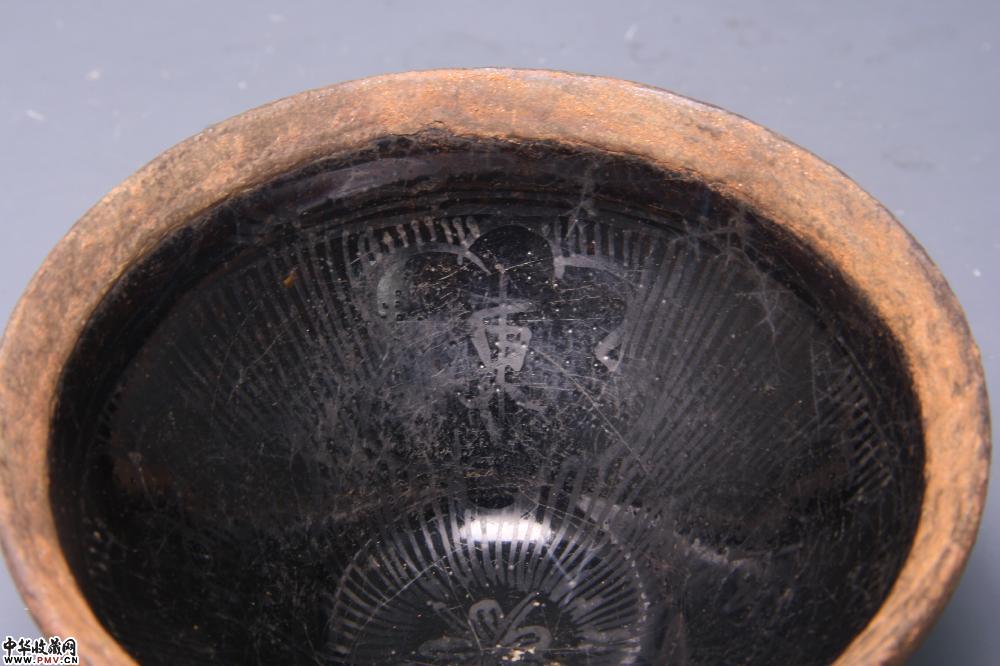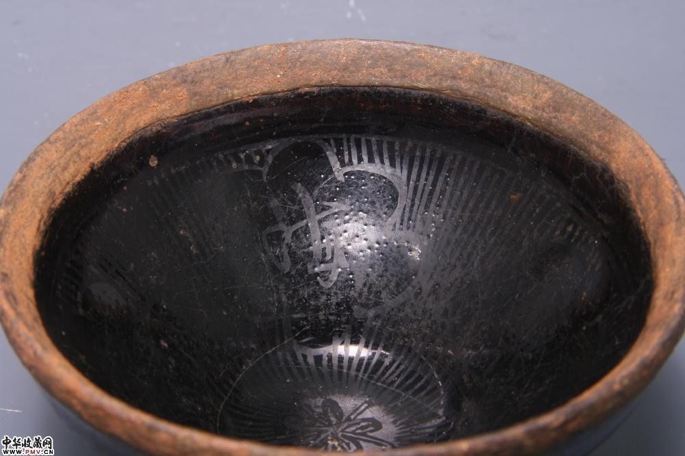南宋遇林亭窑黑釉描金“福深东海”包银盏