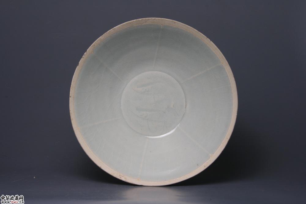 南宋景德镇窑青白釉出筋刻双鱼纹芒口碗