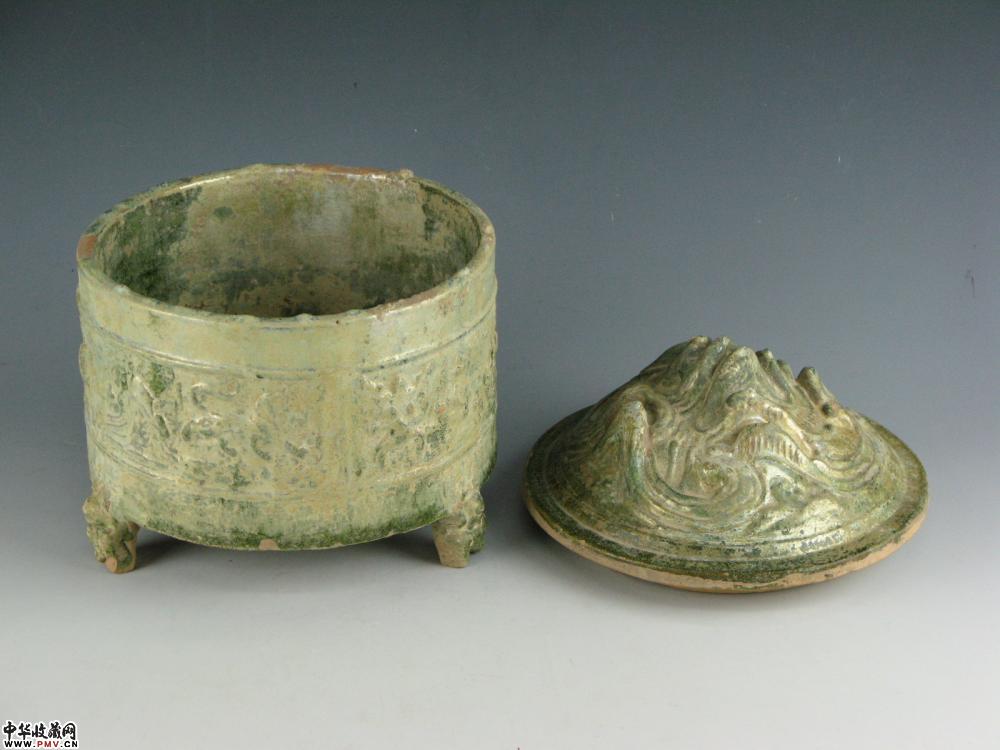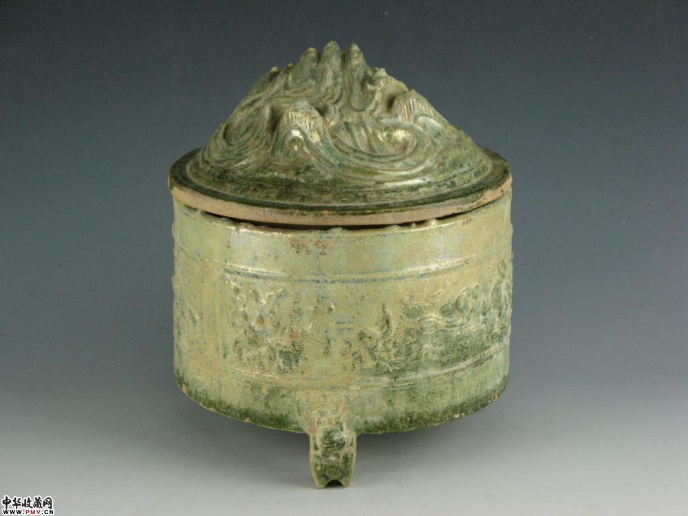 汉 绿釉走兽博山奁D23