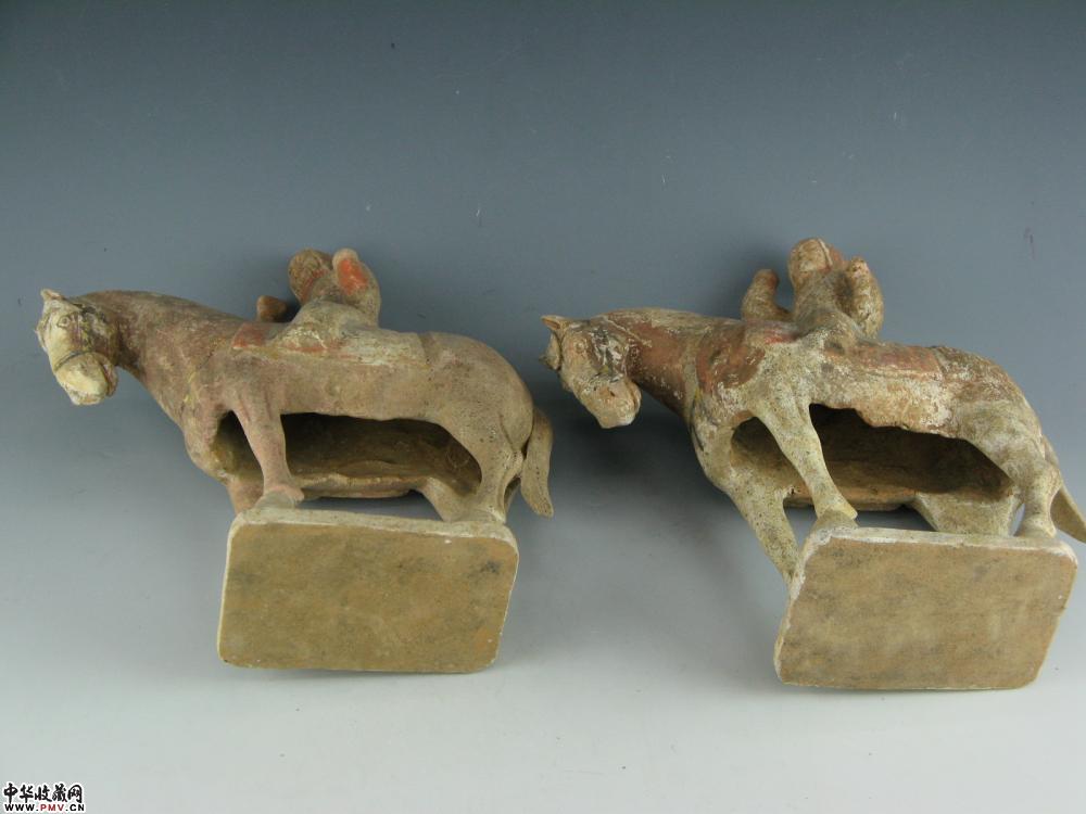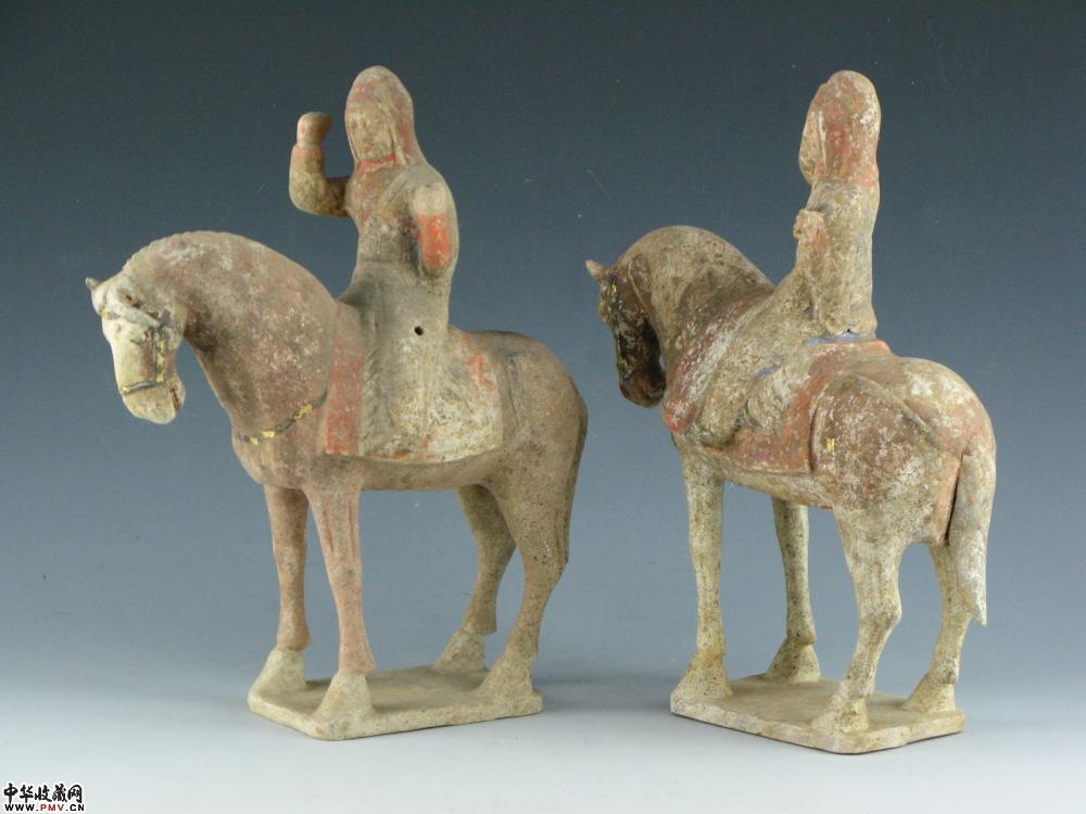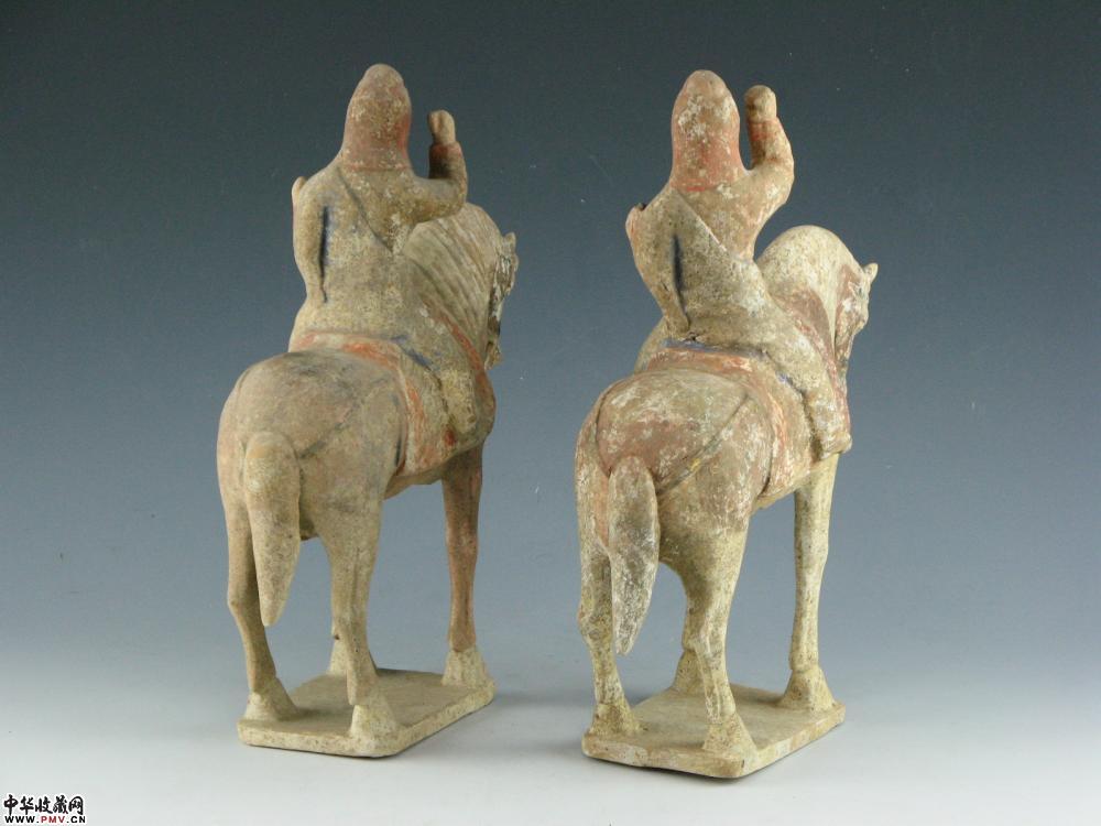 唐 挂蓝彩贴金人骑马H35