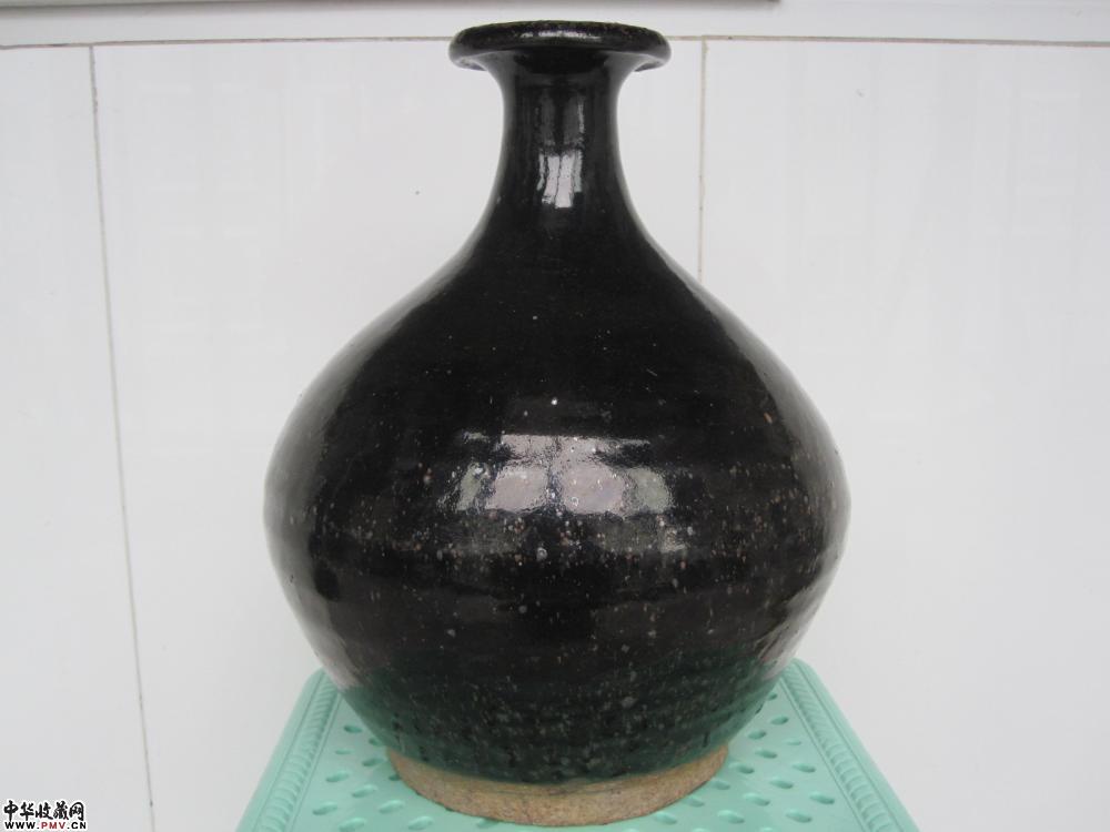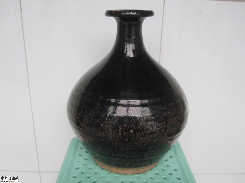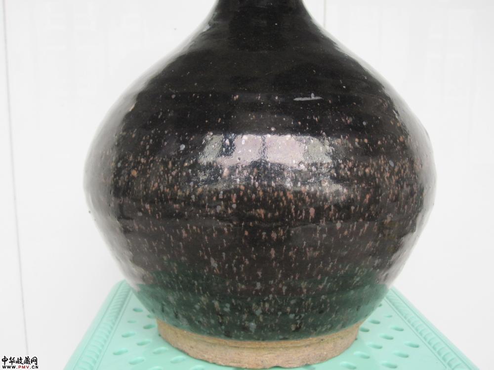 釉水乌黑铮亮,肥厚温润。窑变满天星非常漂亮。器物完美无瑕。高:27.1厘米,口径:8厘米,足径13.5厘米。