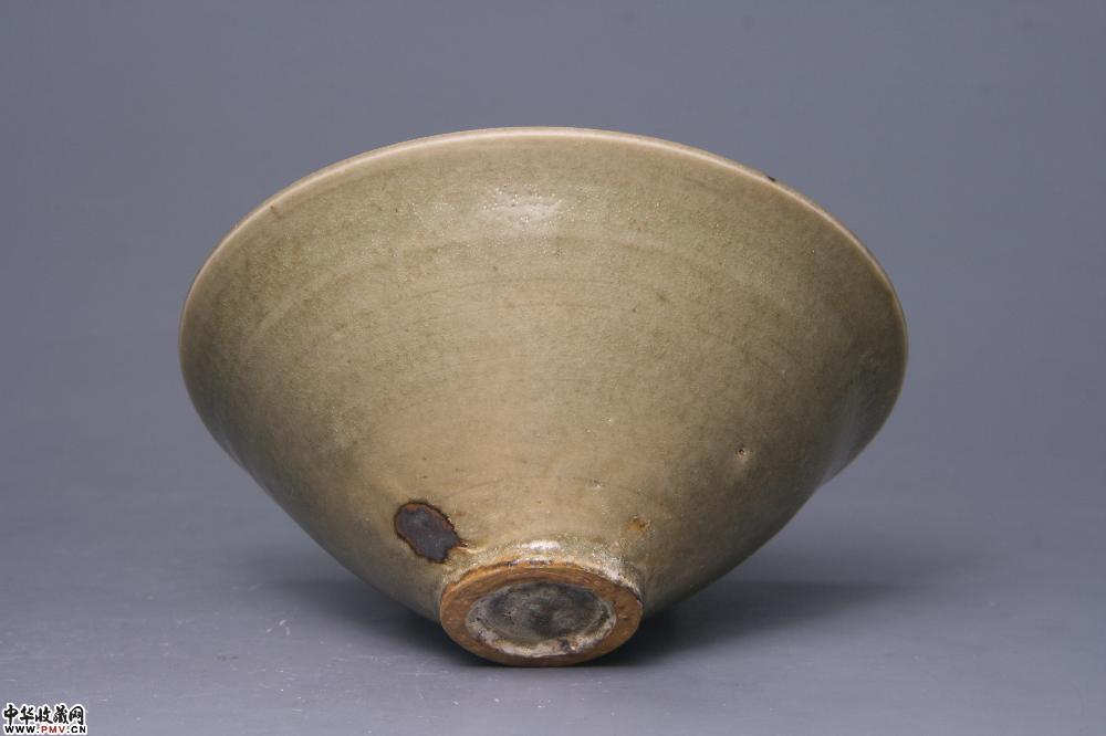 高5cm,口径11.8cm,底径3cm,口沿一小磕皮,靠近底部有一原窑铁锈斑,釉色深青中泛黄,呈斗笠状,是一件不错的北宋耀州窑产品!