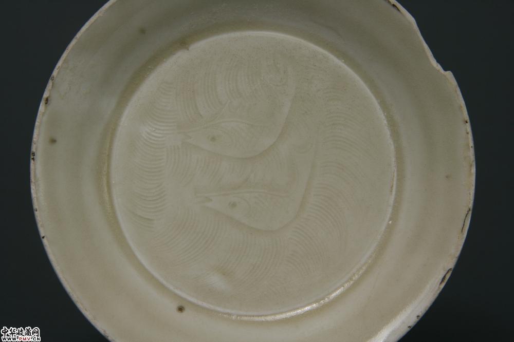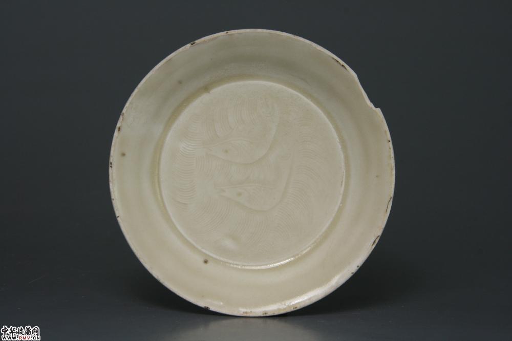 北宋定窑白釉刻划双鱼纹碟