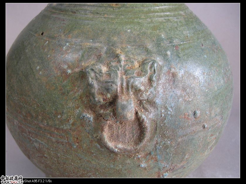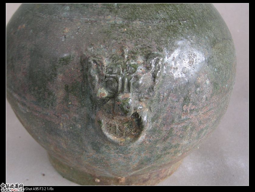 汉代 绿釉虎首瓶