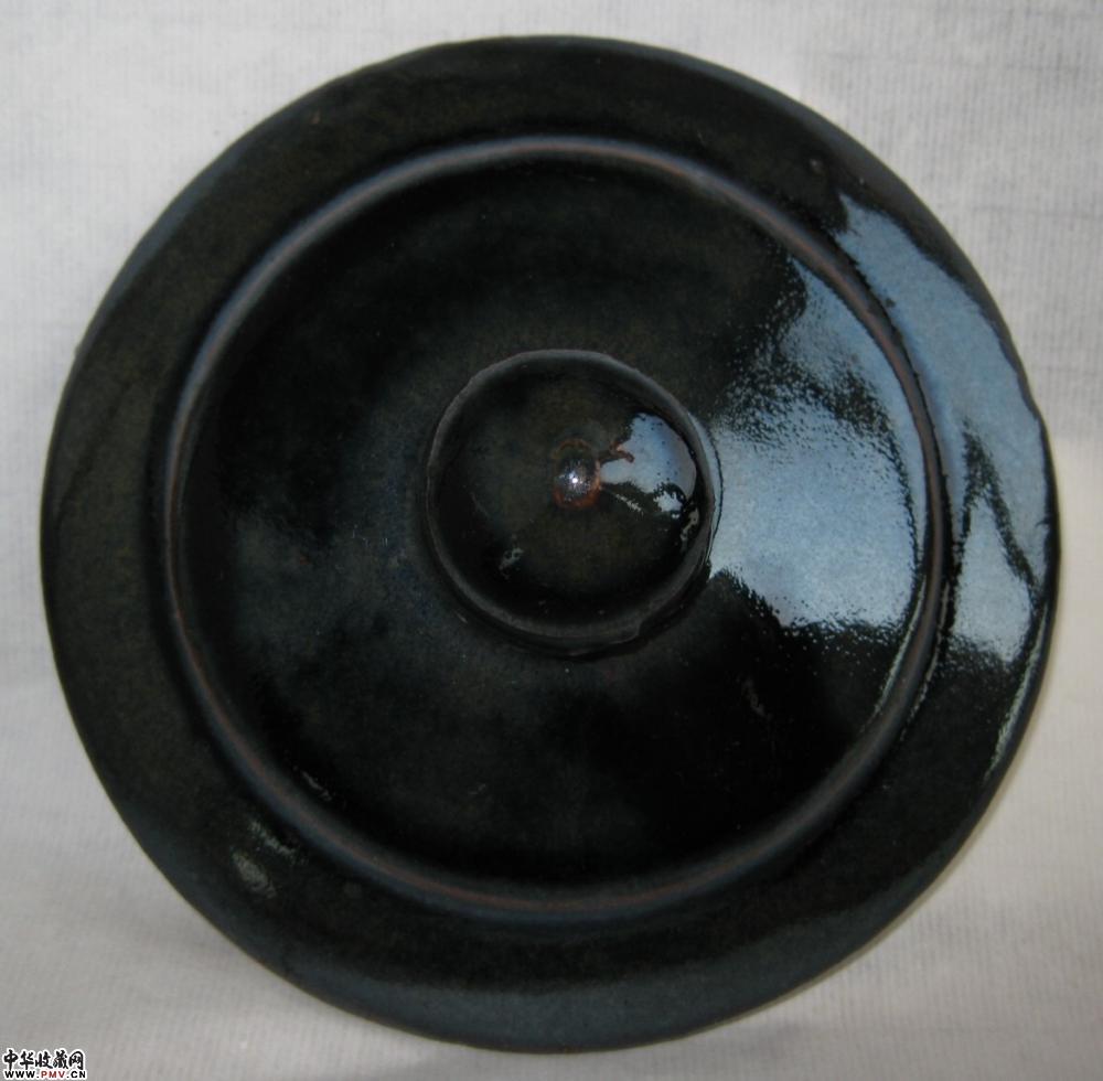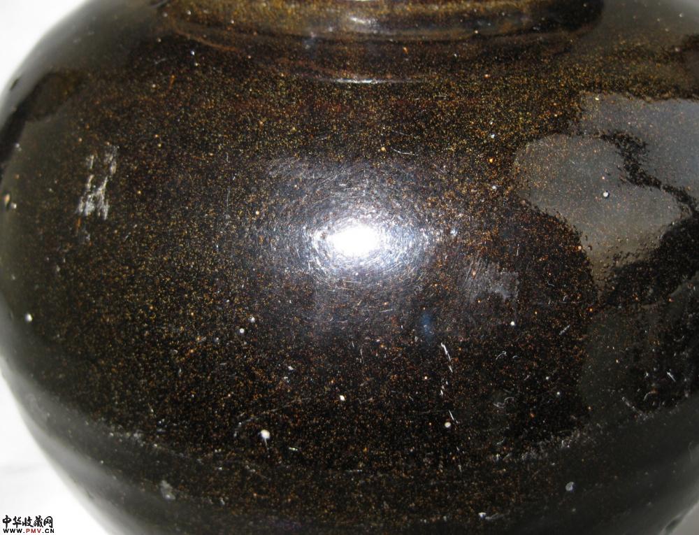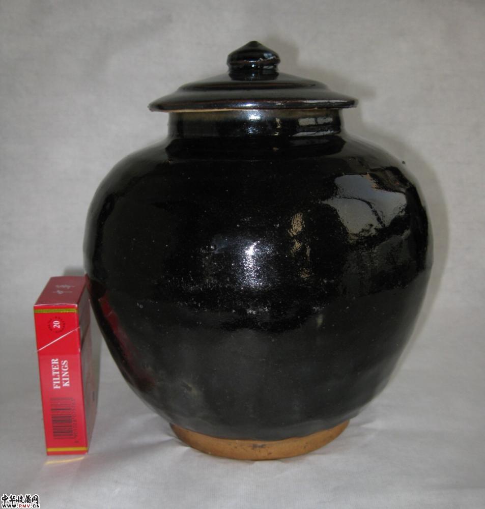 清早期磁州窑黑褐釉窑变大号盖罐一只,釉色莹润,乌黑润亮,器形硕大,古拙而规整,釉面有星状金褐色窑变斑,十分漂亮,全品相,高22.5公分,最大腹径约20公分.