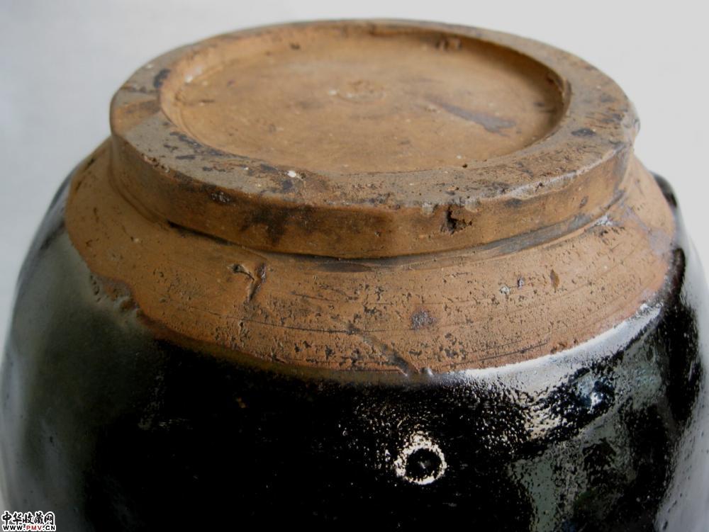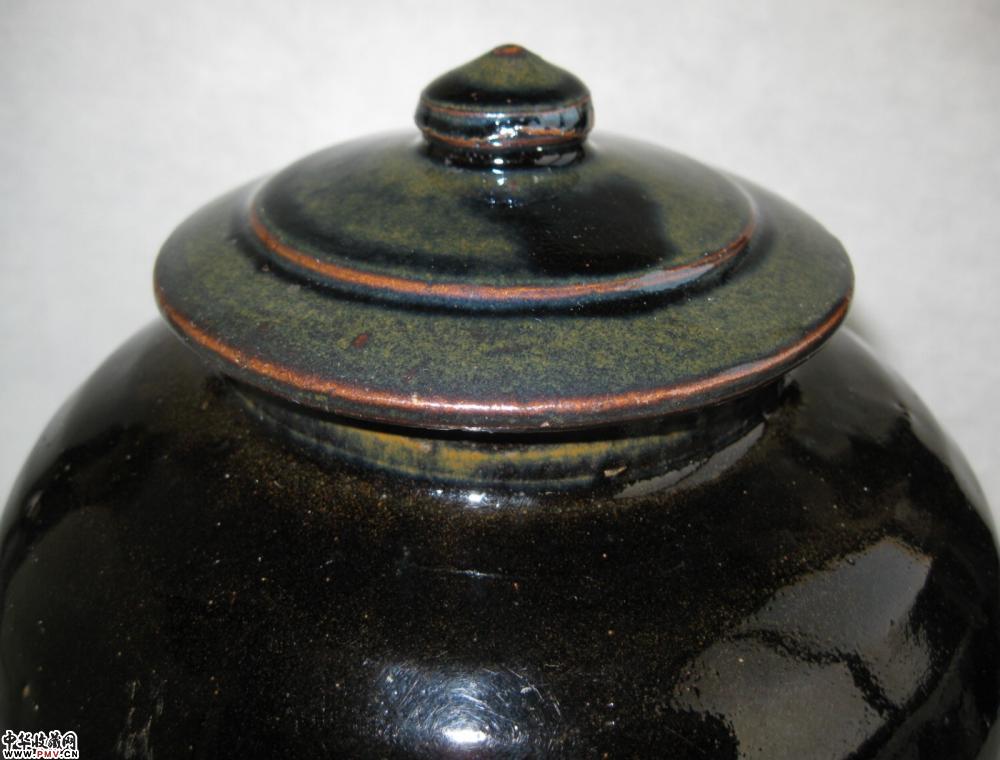 清早期磁州窑黑褐釉窑变大号盖罐一只