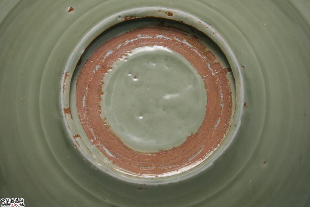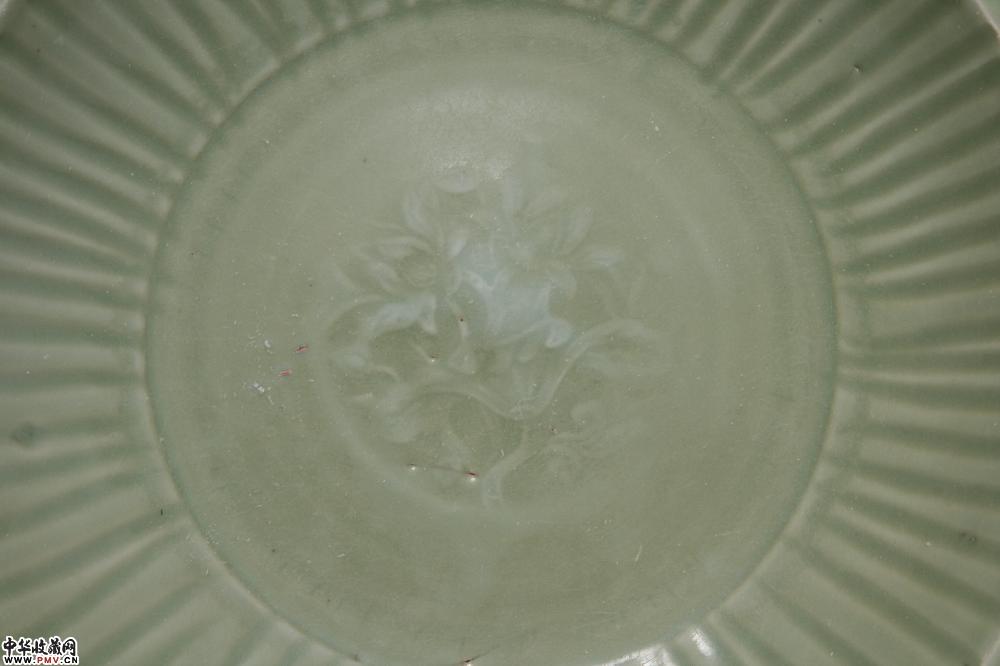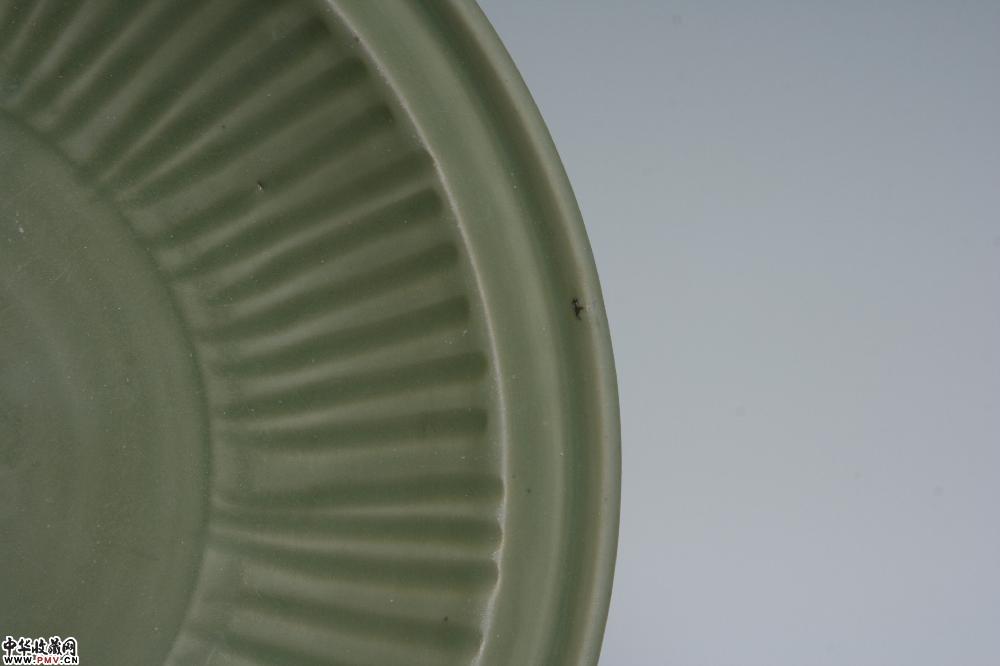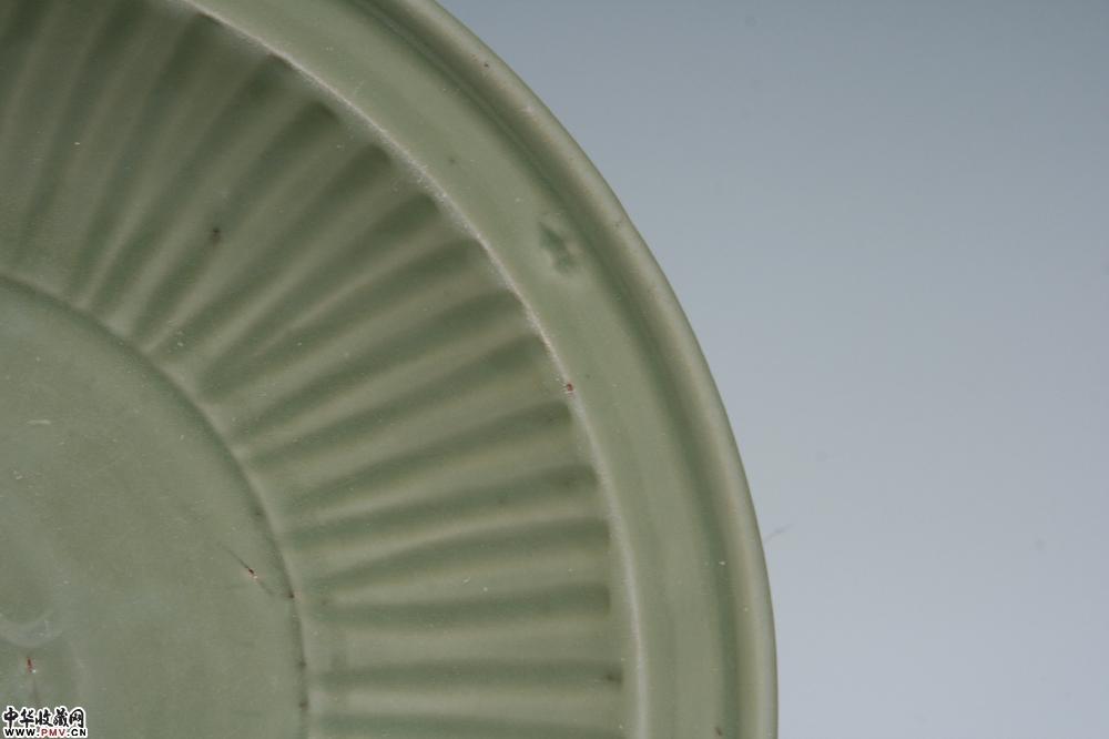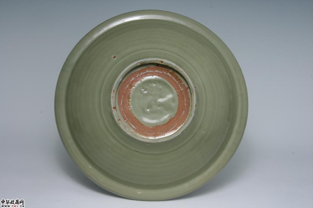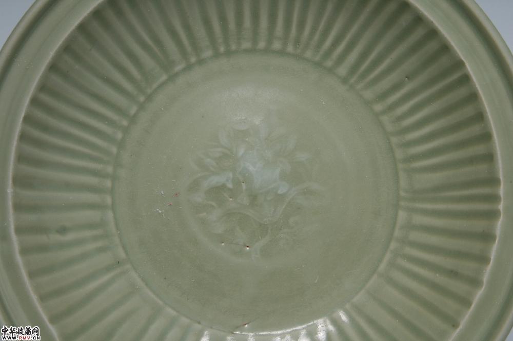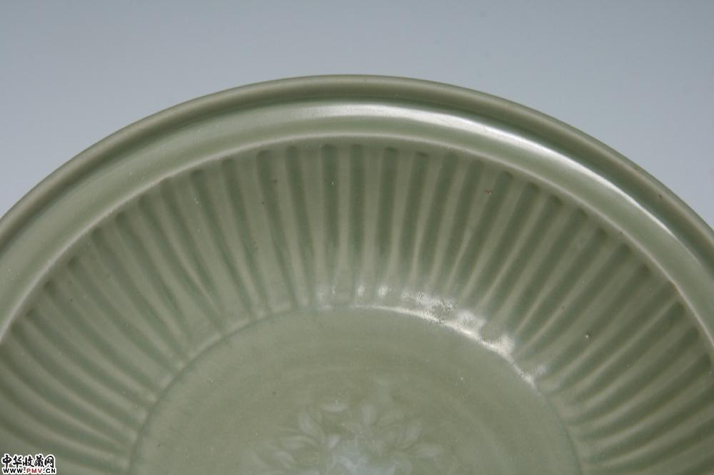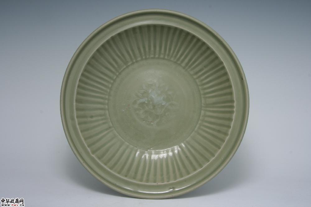 元龙泉窑梅子青釉印花拉线折沿大盘