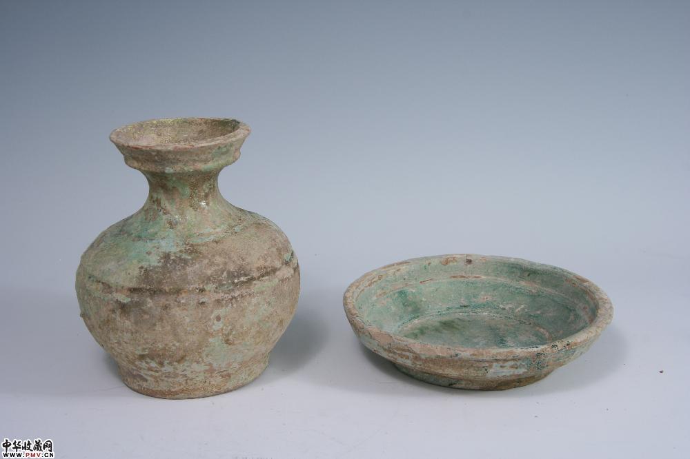 汉绿釉托盘(一对)