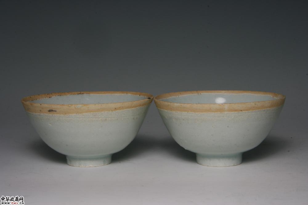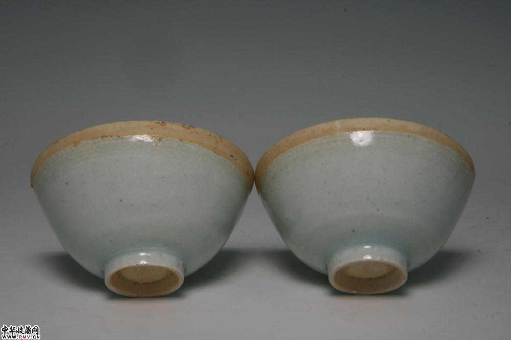 高5cm,口径10cm,底径3.3cm,一碗腹部一小缩釉,其余完好。