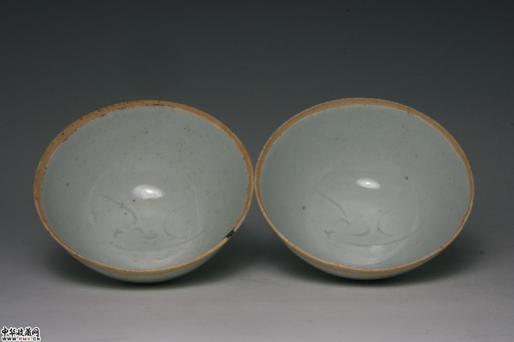 南宋景德镇窑青白釉刻花芒口碗(一对)