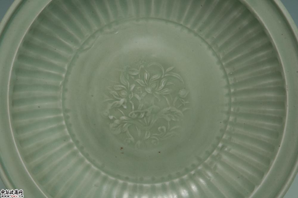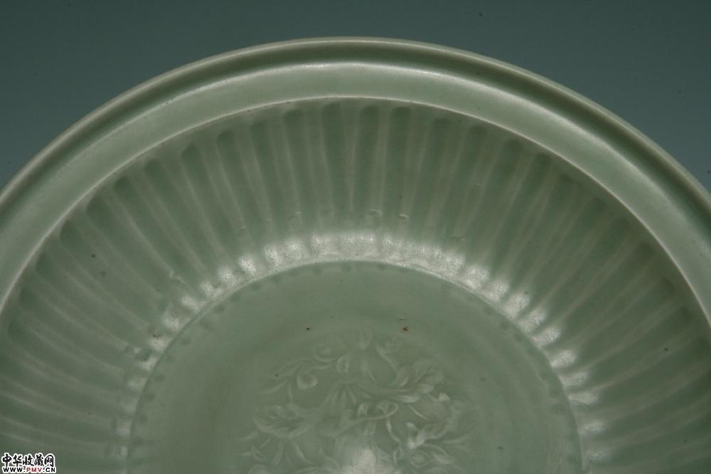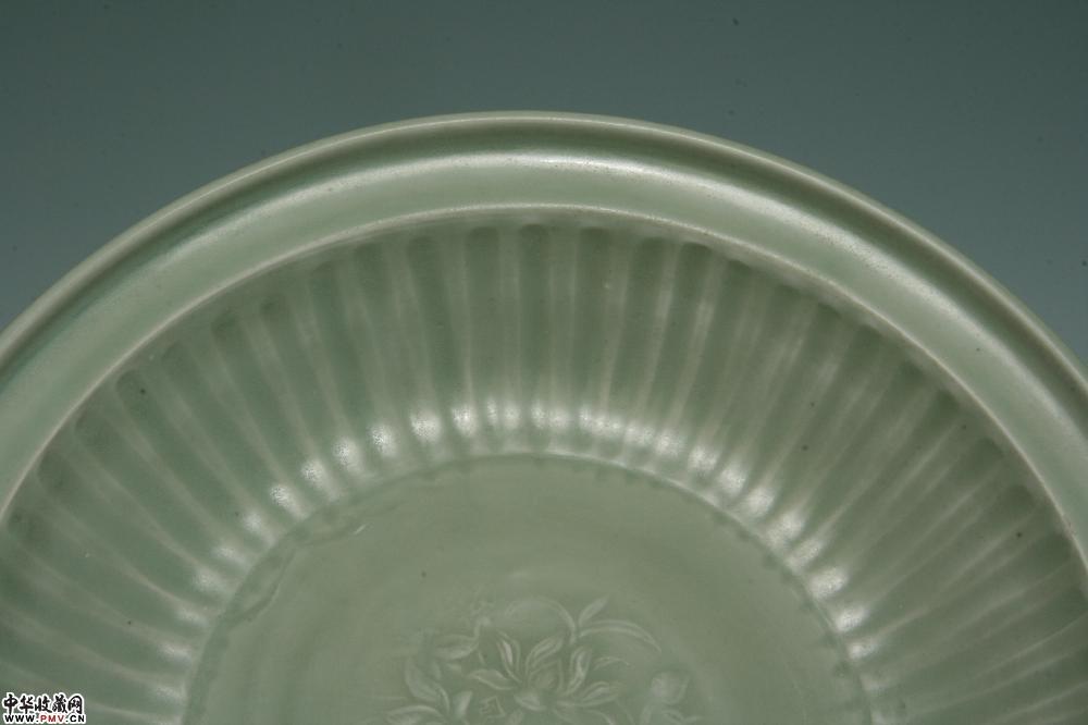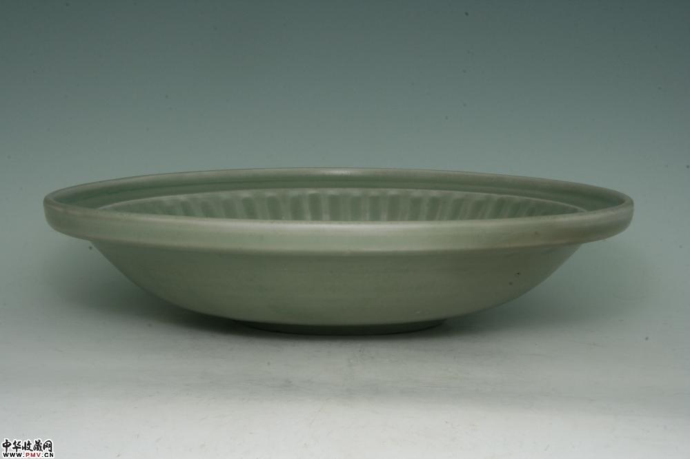 元龙泉窑青釉印花拉线折沿盘