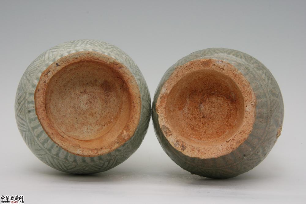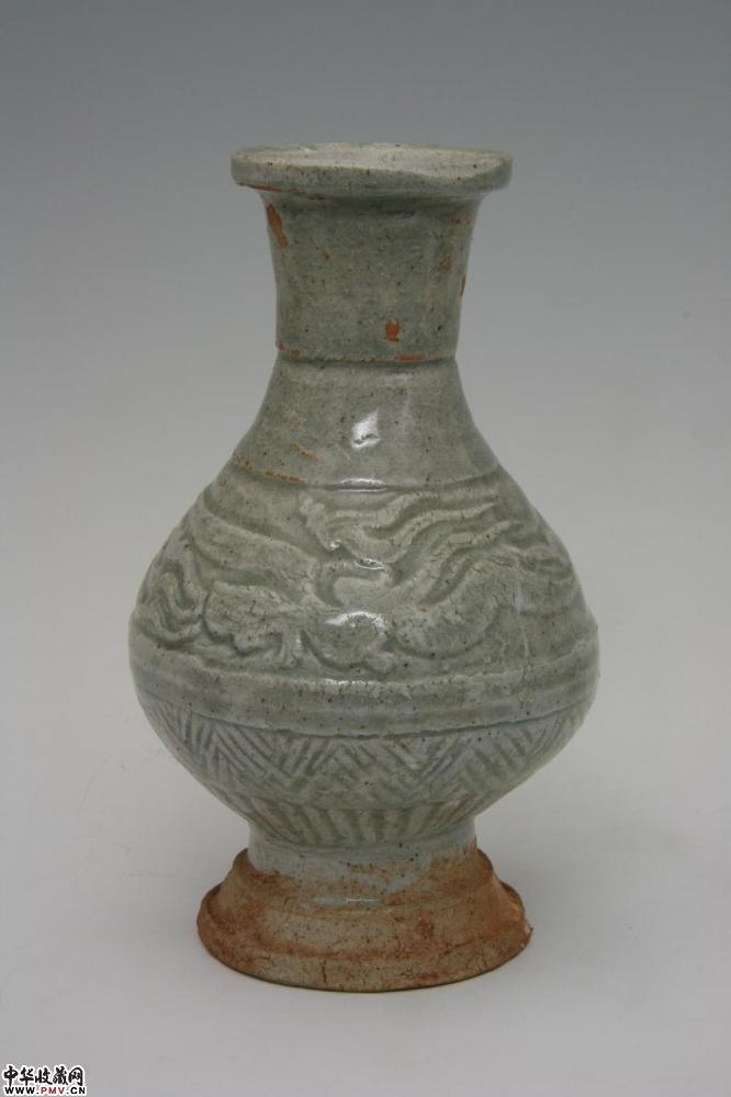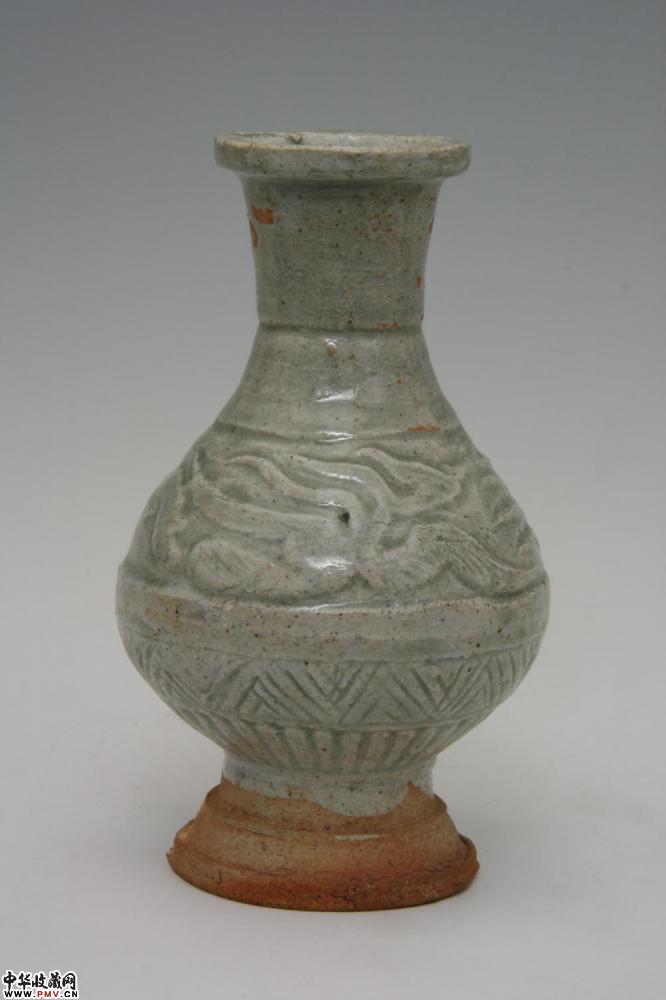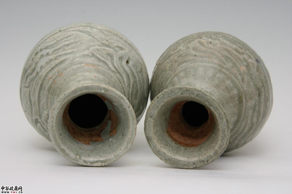 元景德镇窑青白釉刻双凤纹瓶(一对)