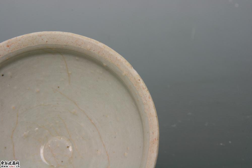 高4.3cm。口径10.3cm,底径3.2cm,微夹扁,口沿一小磕,里内惊釉。