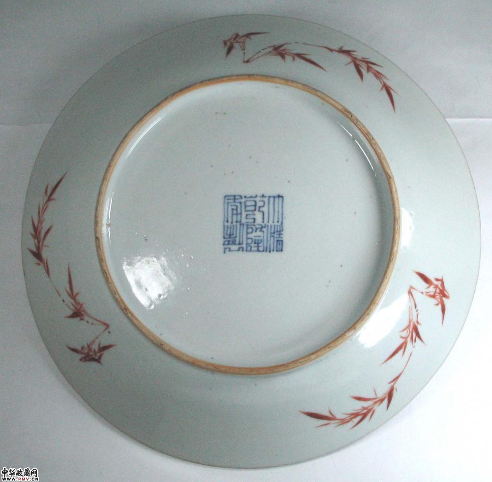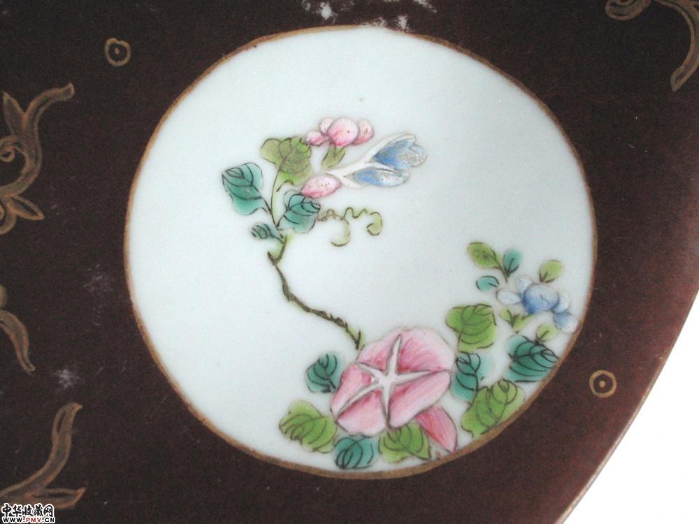 清代酱地开光粉彩盘