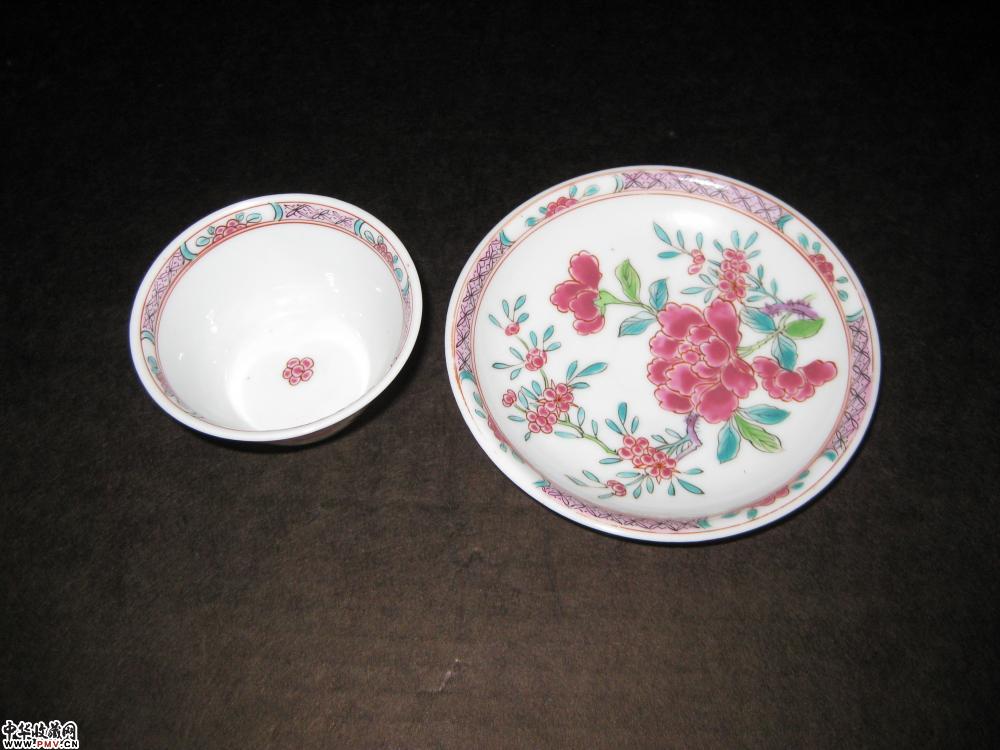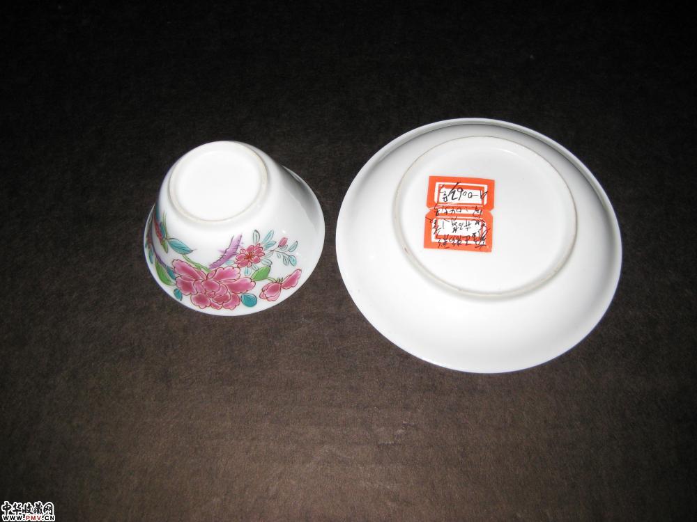 茶碟直径10.3厘米,小杯直径6.7厘米,高3.7厘米。小杯完好,小碟底小鸡爪,如图。