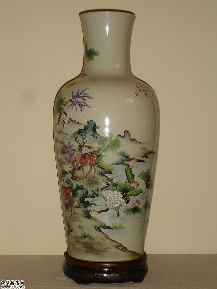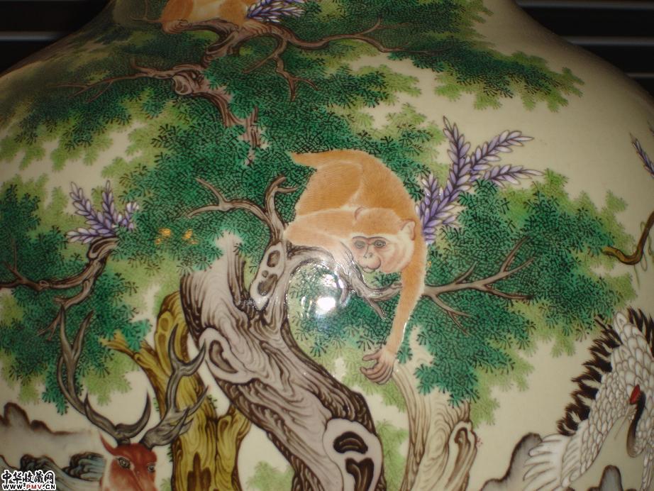 当代官窑精品。大尊。故宫定制。完全根据故宫提供的历史文献,按清代工艺程序,由中国当代顶级陶瓷艺术家制做。人们可能会在故宫见到她的孪生姐妹。约60厘米高。乾隆唐窑底款。