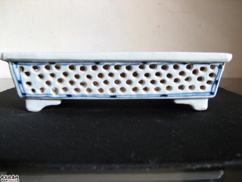 清水仙花盆,长18厘米,宽11.5厘米,高5厘米。品相完好。