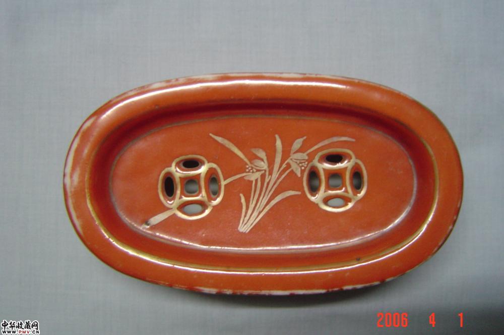 清珊瑚红描金兰花纹蛐蛐罐