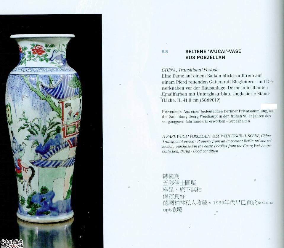 过渡期五彩大口观音瓶. 德国那高拍卖品。
