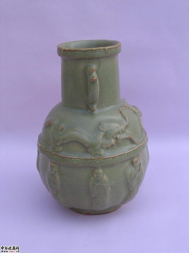 明龙泉窑双龙戏珠八仙纹罐