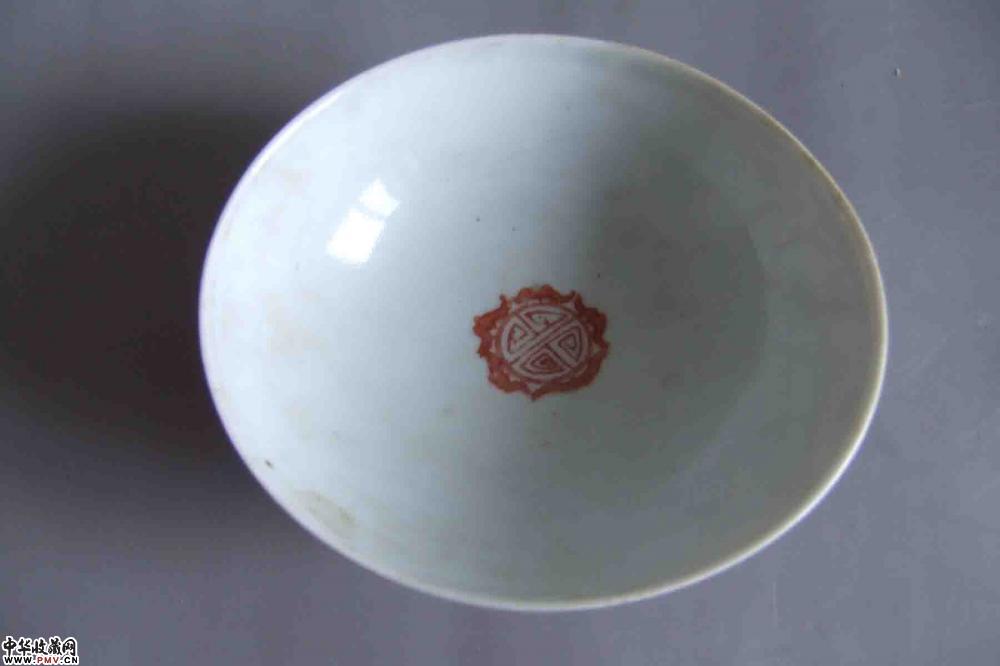 清中期矾红五福捧寿碗