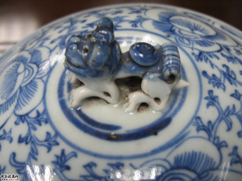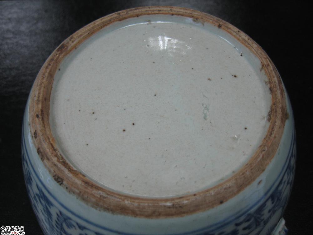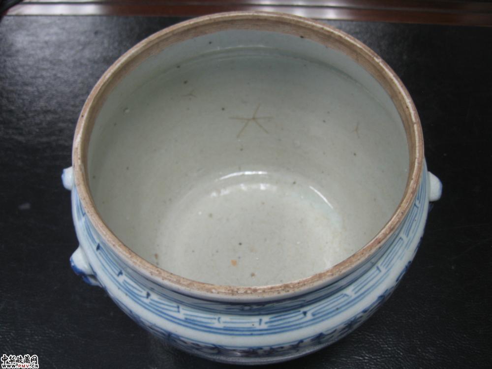 高约20公分(连盖),罐高约16公分,腹径约205公分,连耳长22公分,内壁两处鸡爪纹(如图),盖后配。起价1800元。