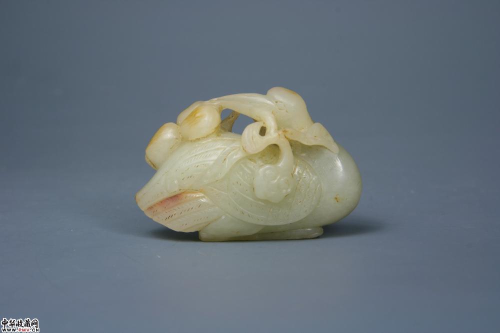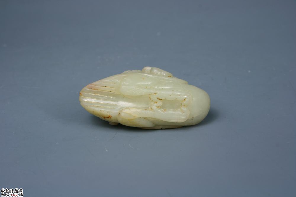 整器通高为3.8cm,长6cm。有原来的石纹,质地稍干,带有絮状石纹,部分留有皮色,雕工细致,是一个摆件。
