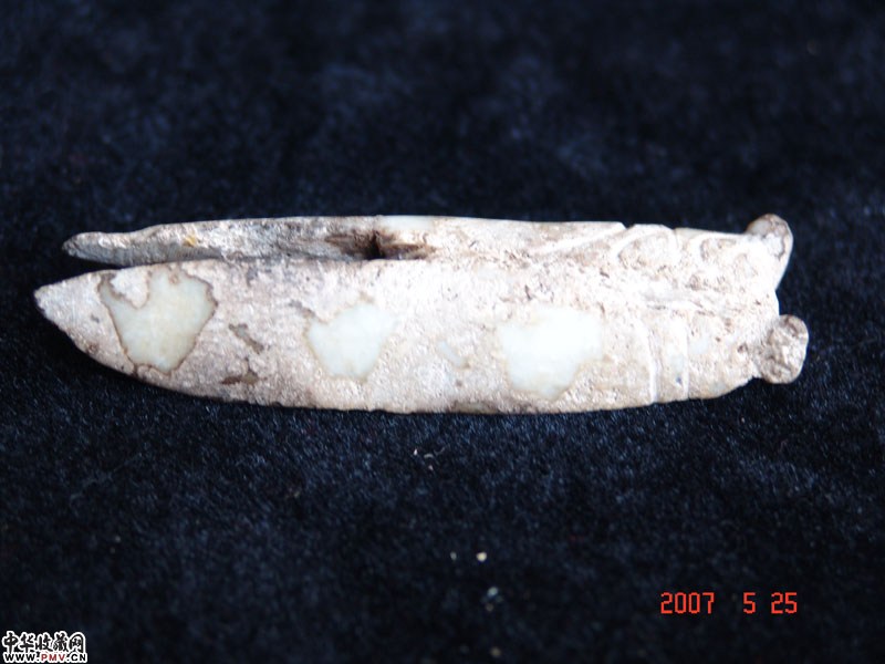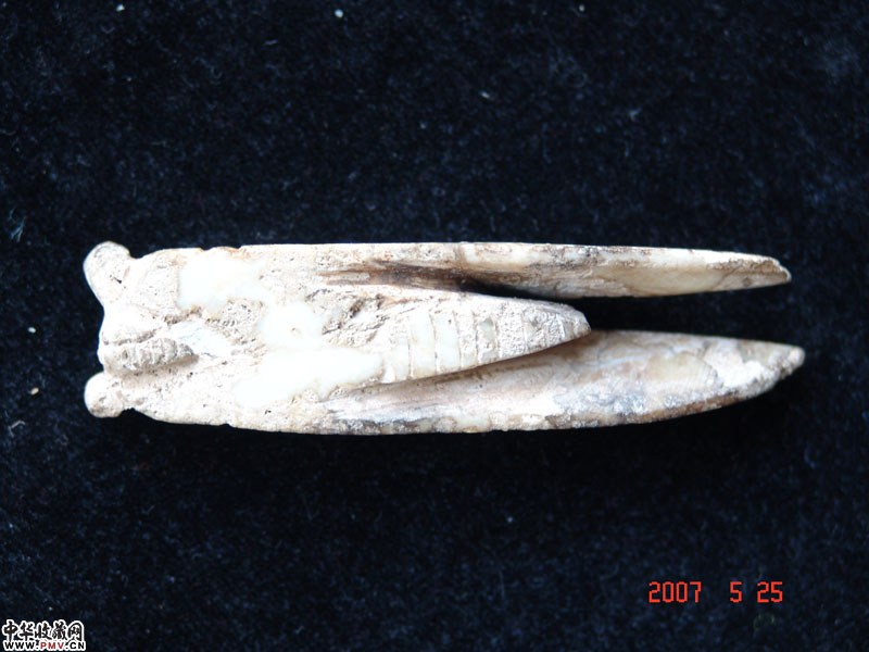 尺寸长8厘米、宽2.1厘米、高1.6厘米,钙化严重,保存完整,全品。(已售)