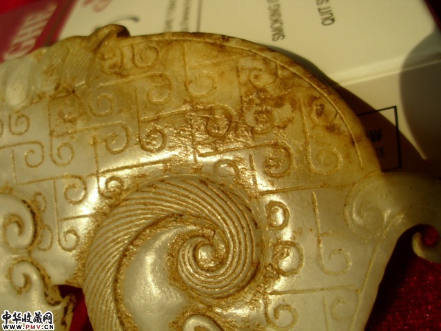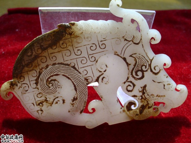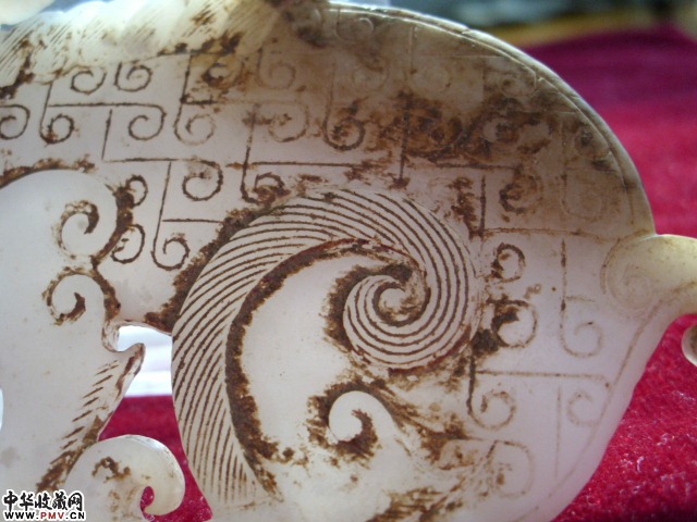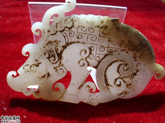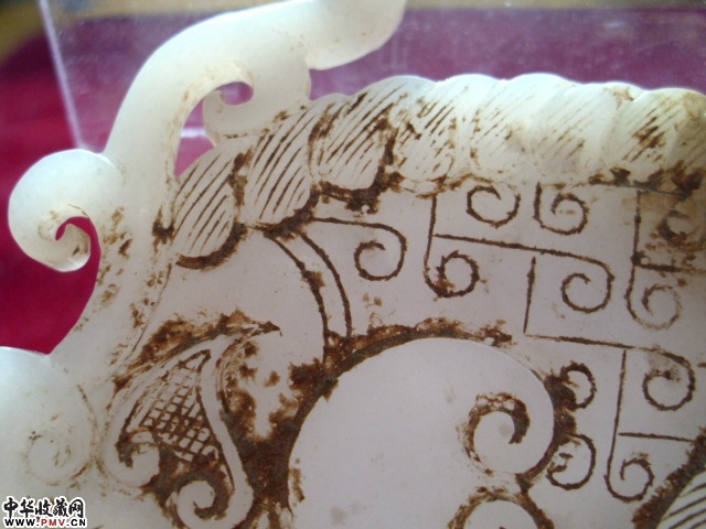 玉质滋润有油性,玻璃光泽,纹饰精细美观,沁色自然有过度。
