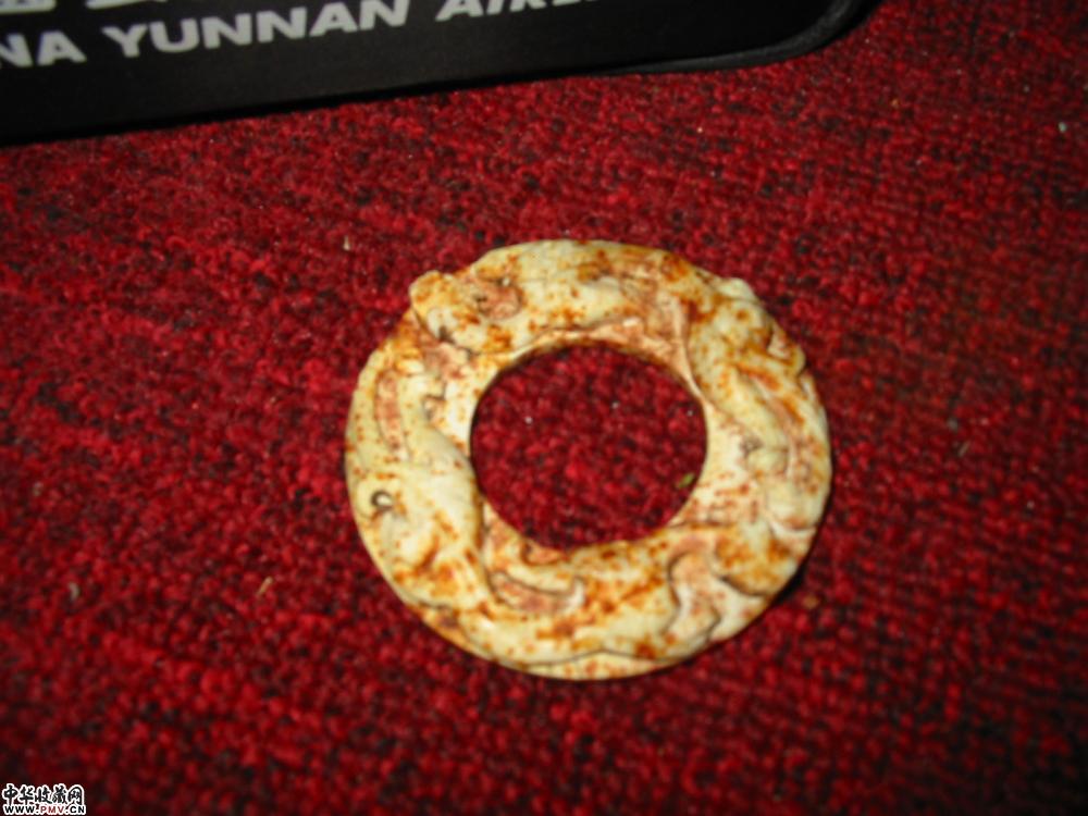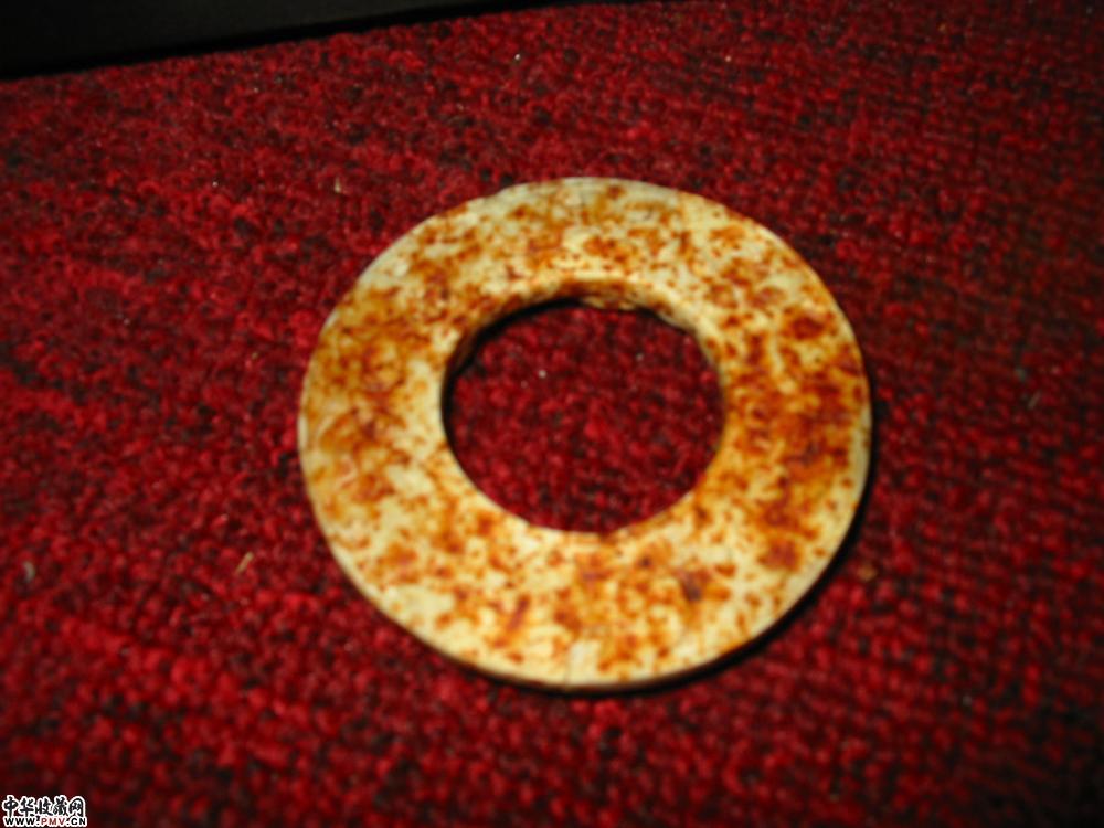 战国赤虎玉壁 外径7cm,内径3.1cm,厚0.9cm.