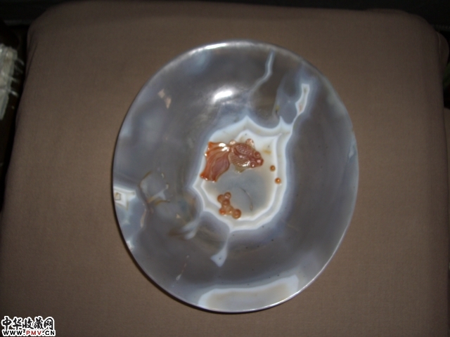 清.瑪瑙巧雕鱼藻纹椭圆型盘