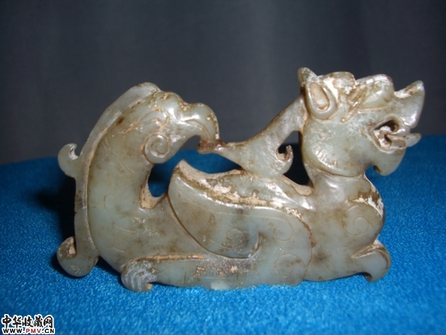 古.青白玉圆雕同体龙凤