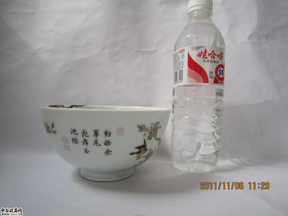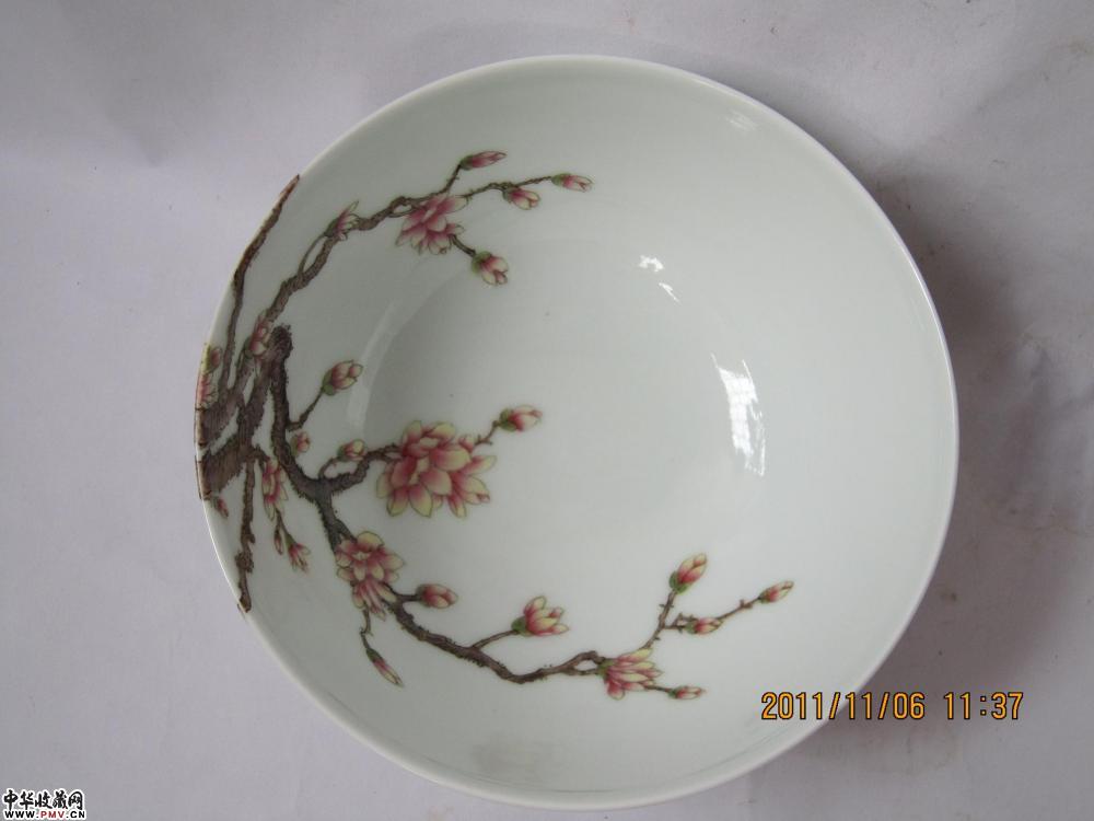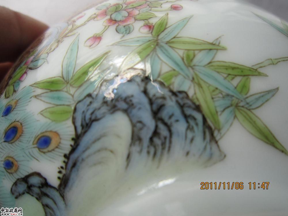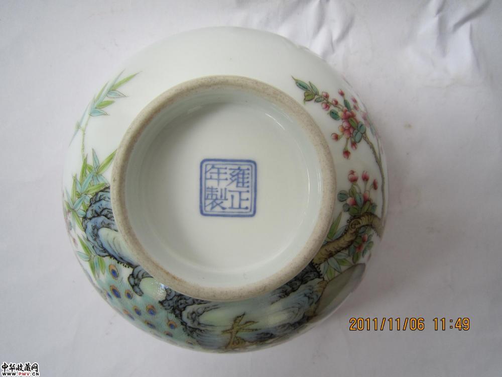 清雍正珐琅彩过墙桃花孔雀纹碗