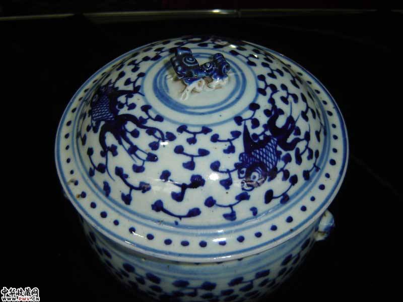 清中期清花金鱼粥罐
