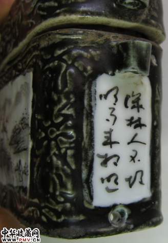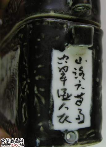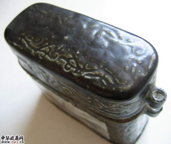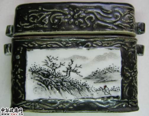 黑釉开光绘画穿带瓷盒