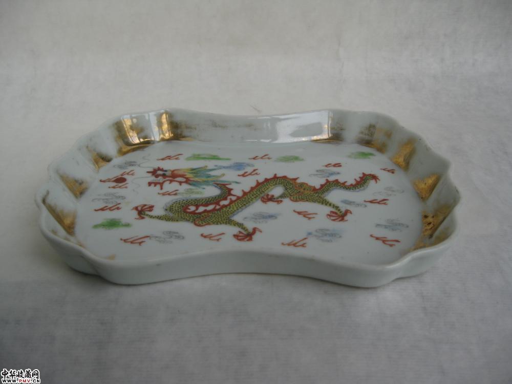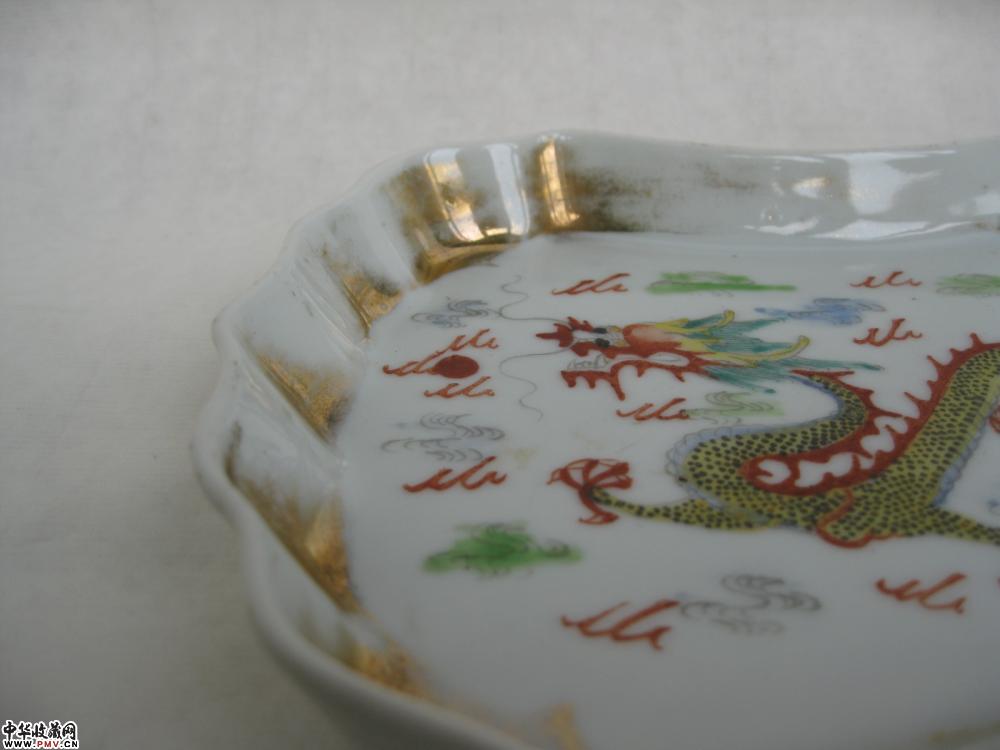 画工精细,釉色莹润,胎质细白,全品相,局部金彩微脱,老货难免,长17.8公分,宽13.8公分.