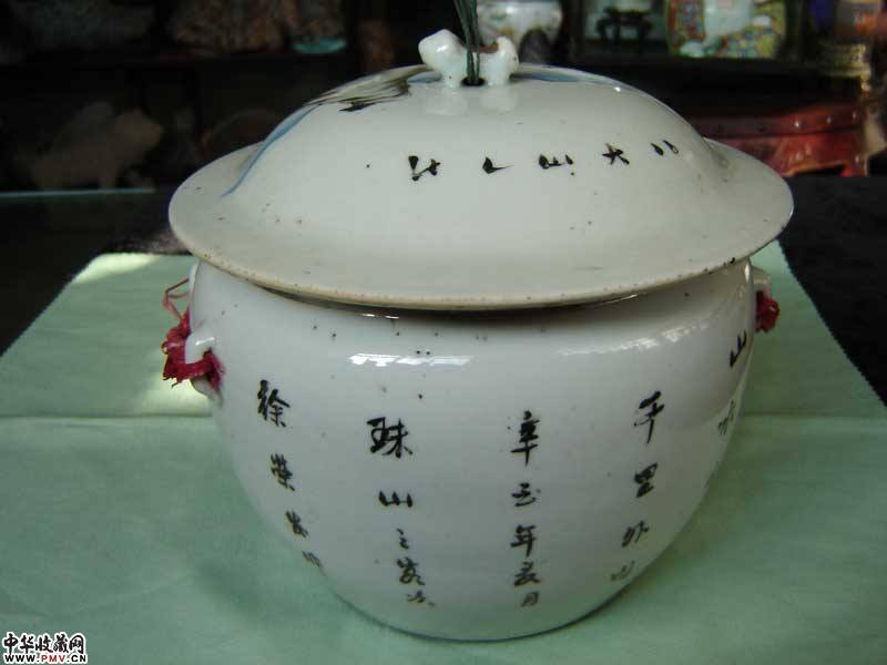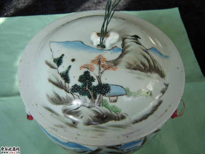 民国浅洚彩山水粥罐