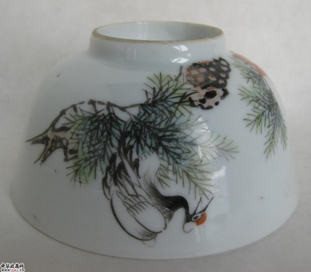 民国新中华出品全品相仙鹤纹定烧碗一只,釉色莹润,胎质细白,画工精细,定烧器,全品相,口径11.5公分,高5.6公分.