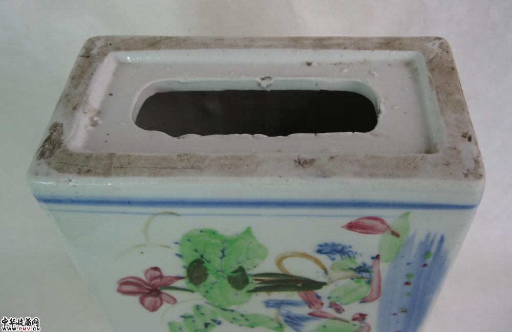 民国三彩荷塘鸳鸯戏水瓷枕