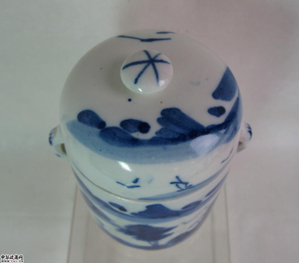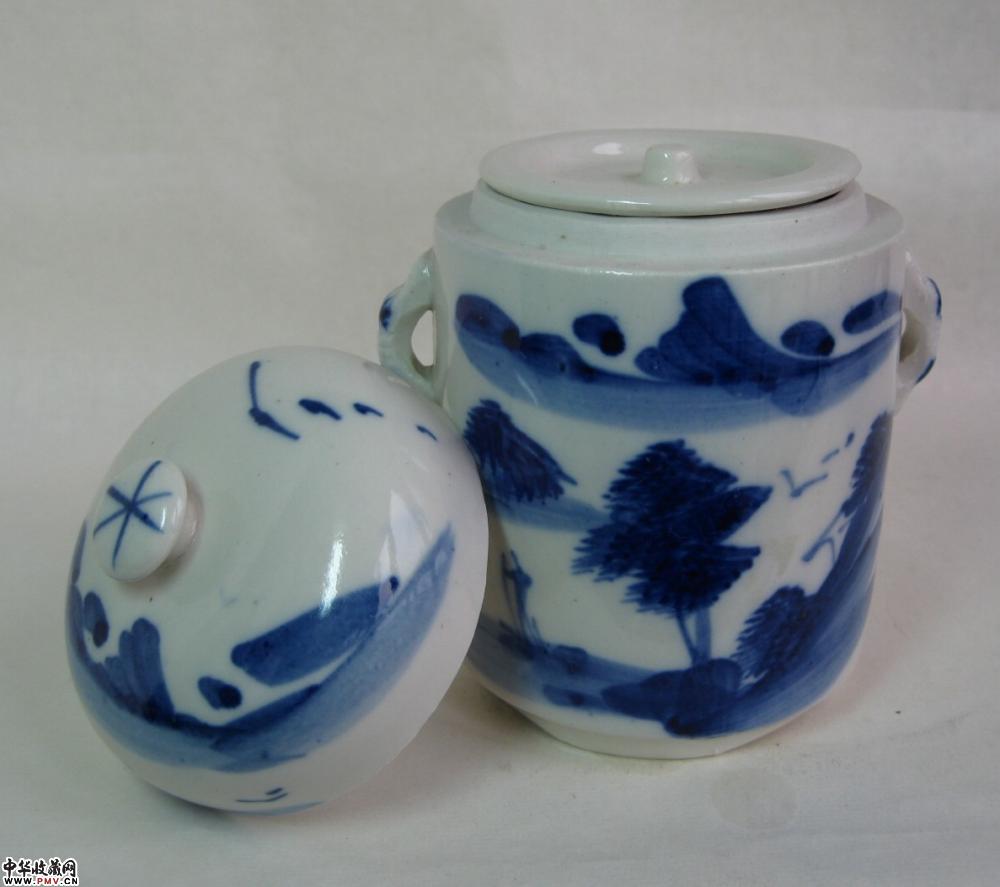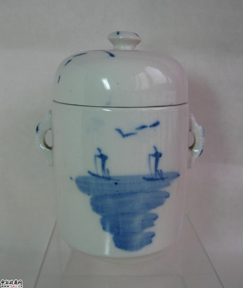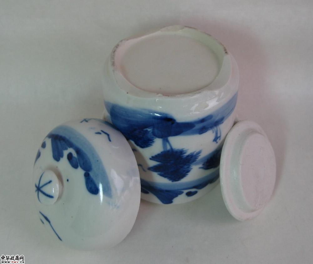 民国青花盖罐三件套,釉色莹润,青花发色纯正,画工洒脱,全品相,高12公分,口径7.6公分.
